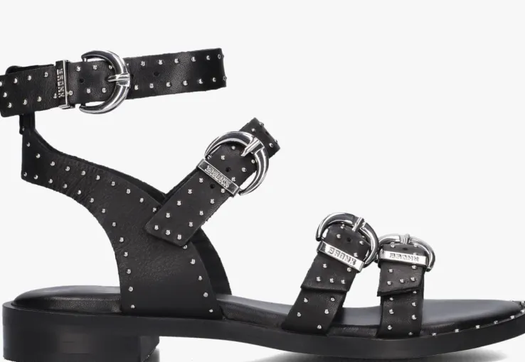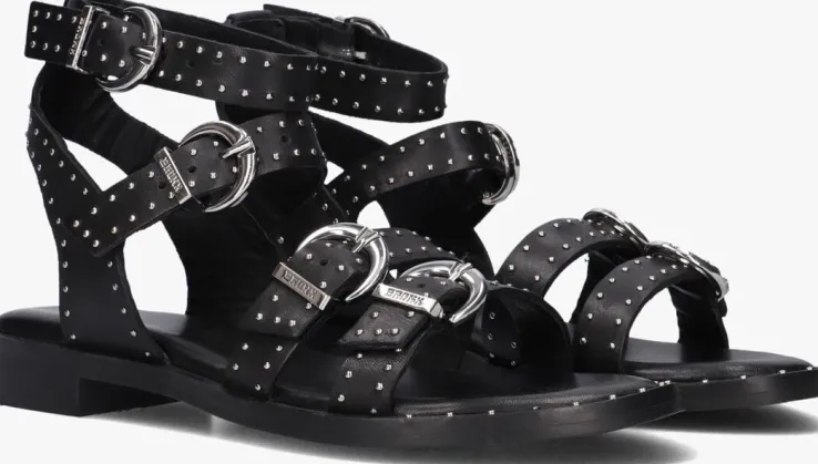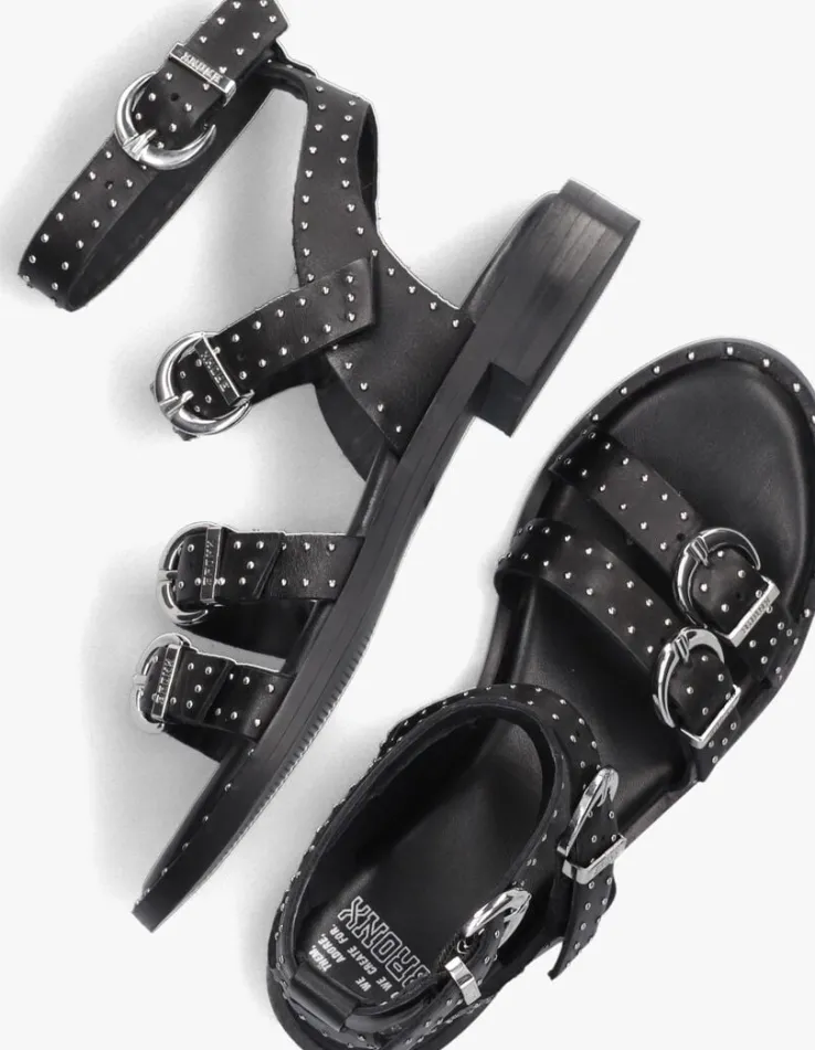 Stap in stijl met de BRONX THRILL 84997-A sandalen! Deze zwarte sandalen zijn perfect voor dames die op zoek zijn naar comfort en fashion in één. De bovenkant bestaat uit leer en heeft goudkleurige, mini studs. Alle bandjes zijn voorzien van een gespsluiting en zijn afgewerkt met een subtiel merkreliëf. Draag deze sandalen met een zomerse jurk of een trendy jeans voor een casual-chique look. Of combineer ze met een jumpsuit voor een meer formele gelegenheid.
