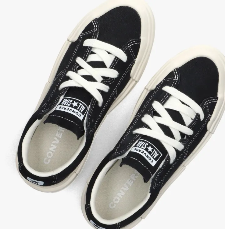 Stap in stijl met de CONVERSE CHUCK TAYLOR ALL STAR CRUISE lage sneakers voor dames. Deze zwarte sneakers zijn perfect voor een casual dagje uit of een relaxte wandeling in de stad. Dit model is gemaakt van canvas met witte stiksels. De binnenvoering is gemaakt van textiel en leatherlook en heeft een vast voetbed. De rubberen plateauzool van 5 cm maakt de sneaker extra tof en biedt ook nog is grip en stabiliteit. Met deze sneakers ben je helemaal klaar voor elke gelegenheid. Laat jezelf stralen en voeg deze must-have schoenen toe aan je collectie!