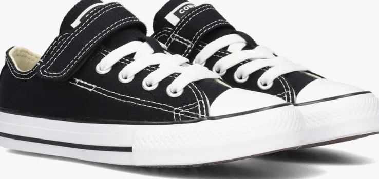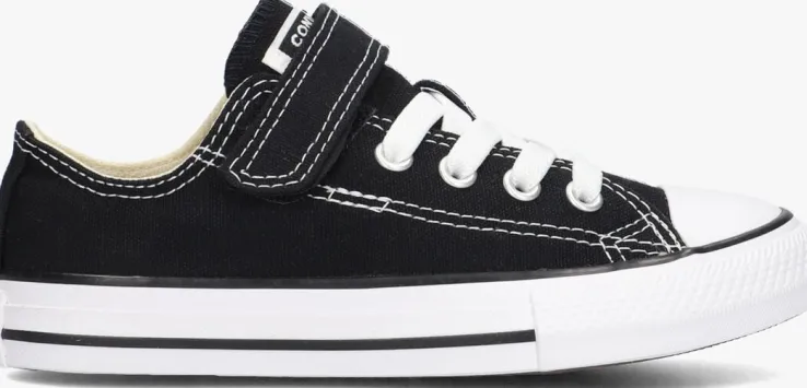 Stap in stijl met de CHUCK TAYLOR ALL STAR LO 1V lage sneakers van CONVERSE. Dit lage sneaker model is ideaal voor de kids die liever niet willen strikken. Door de klittenbandsluiting in combinatie met de elastische veters, is aan-en uittrekken geen probleem meer. De zwarte canvas buitenkant is erg makkelijk te combineren en het merklabel is te vinden op de tong en hiel. De sneaker is textiel gevoerd en het dempende voetbedje is niet uitneembaar. De rubberen zool is afgewerkt met zwarte lijntjes en de zwarte loopzool heeft een gripvast profiel.