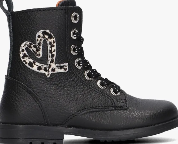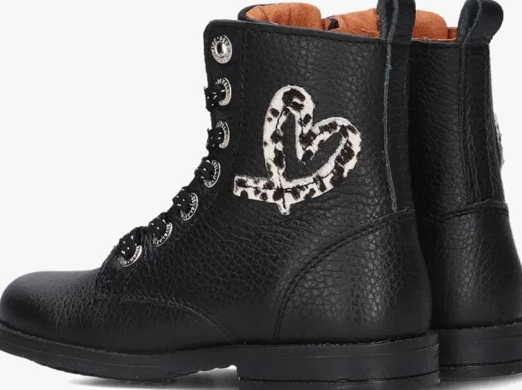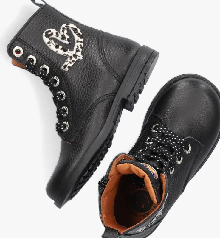 Met deze coole veterboots 42794 uit de collectie van het merk DEVELAB kan het avontuur beginnen! De buitenkant is gemaakt van gestructureerd zwart leer en heeft stoere details zoals de metalen veterringen, het merklabel op de tong en het hartje op de schacht met ponyhair. Dankzij de rits aan de zijkant kan jouw kleine meid deze fijne schoen helemaal zelf aan- en uittrekken en heb jij je handen vrij. Het binnenwerk heeft een leren voering met een uitneembaar voetbed. De rubberen zool is voorzien van een gripvast profiel om uren lang op te kunnen rennen en spelen. Benadruk je stoere look door ze te combineren met je favoriete jeans of jurk.
