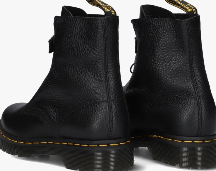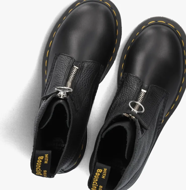 Trakteer je voetenop deze fraaie boots 1460 PASCAL FRONT ZIP van Dr.Martens!Deze matzwarte bootszijn gemaakt van nappaleer met een gedragen leerlook, ademende structuur enzijnniet alleen heel stoer maar ook erg comfi én hip! De rits op de voorkant zorgenvoor een unieke look en je trek je boots er gemakkelijk mee aan en uit.De boots hebben de kenmerkende Dr. Martens accenten zoals het klassieke leer, de gegroefde zoolrand, de oversized hiellus, het gele stikselen de metalen rits. Het binnenwerk is van leer en textiel en heeft een uitneembaar voetbed. De schoen is gemaakt om lang mee te gaan en heeft daarom de welbekende Goodyear-zool met het iconische luchtkussen in de hak. Deze AirWair™ zool is olie- en vetbestendigen biedt een goede schuur- en slipweerstand. Draag ze onder een jeans of ga de uitdaging aan en match ze onder een rokje of jurkje. *Maatadvies: schoenen van Dr. Martens moeten eerst goed ingelopen worden, maar daarna wil je nooit meer zonder!