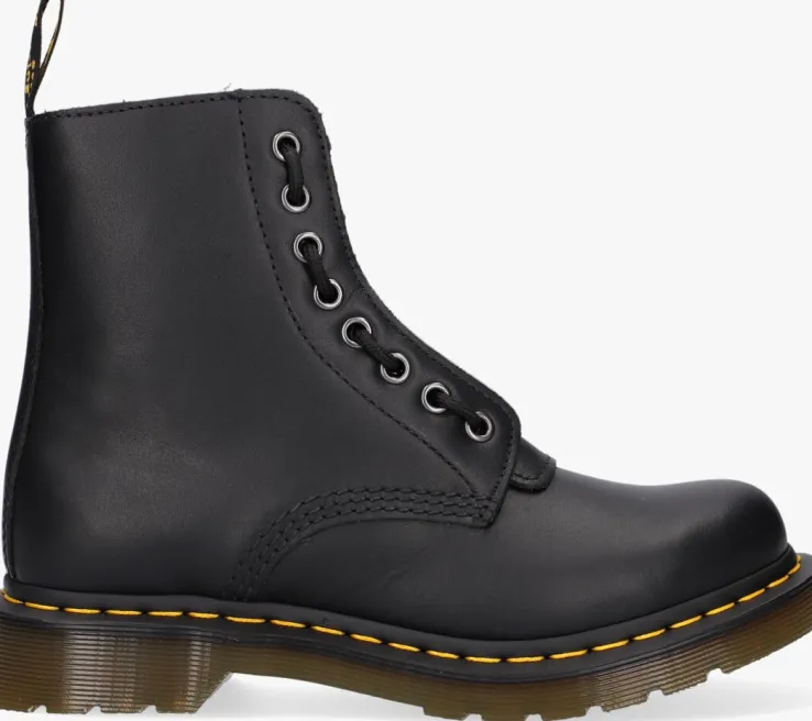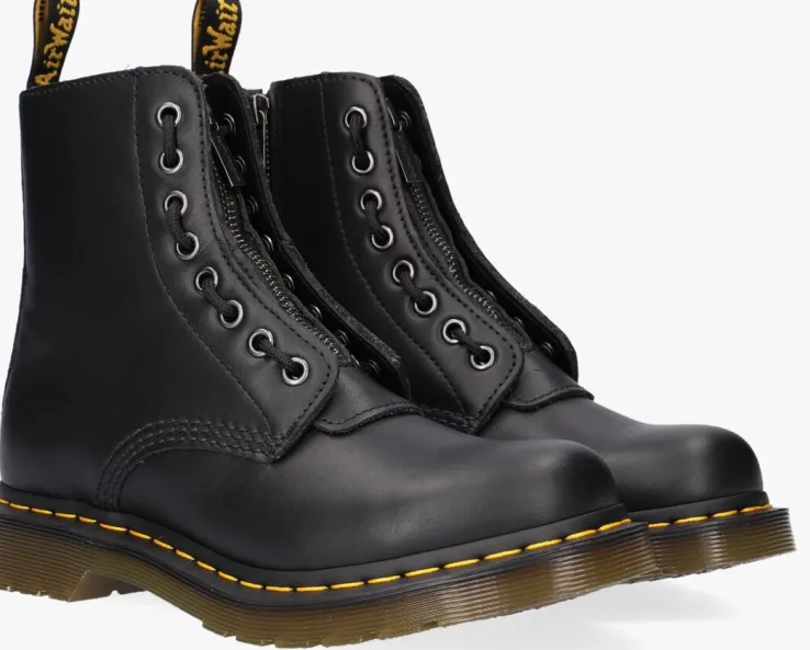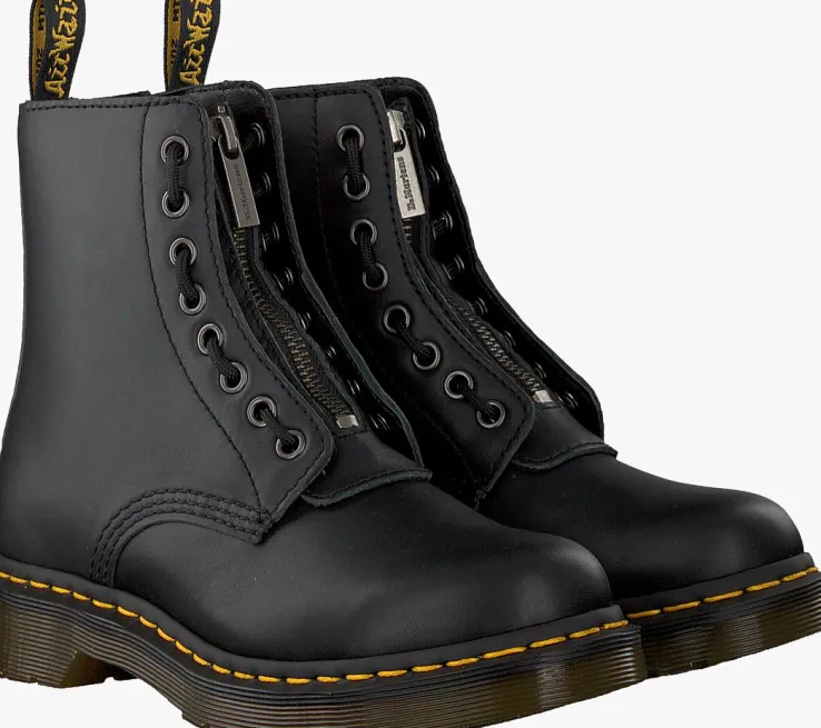 Trakteer je voetenop deze fraaie veterboots 1460 PASCAL FRONT ZIP van Dr.Martens!Deze matzwarte bootszijn gemaakt van fluweelzacht nappaleer met een gladde, ademende structuur enzijnniet alleen heel stoer maar ook erg comfi én hip! De rits op de voorkant en de decoratieve veter zorgenvoor een unieke look en je trek je boots er gemakkelijk mee aan en uit. Tof detail: je kunt het ritsgedeelte eruit halen, waardoor je je look kunt afwisselen met de klassieke boots.De veterboots hebben de kenmerkende Dr. Martens accenten zoals het klassieke leer, de gegroefde zoolrand, de oversized hiellus, het gele stikselen de metalen veterogen. Het binnenwerk is van leer en textiel en heeft een uitneembaar voetbed. De schoen is gemaakt om lang mee te gaan en heeft daarom de welbekende Goodyear-zool met het iconische luchtkussen in de hak. Deze AirWair™ zool is olie- en vetbestendigen biedt een goede schuur- en slipweerstand. Draag ze onder een jeans of ga de uitdaging aan en match ze onder een rokje of jurkje. *Maatadvies: schoenen van Dr. Martens moeten eerst goed ingelopen worden, maar daarna wil je nooit meer zonder!