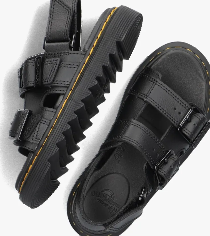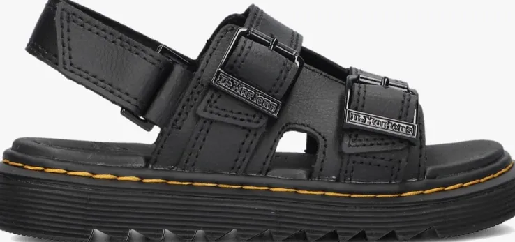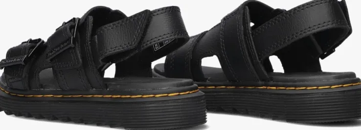 Stoer en comfortabel, dat zijn de zwarte VAREL K sandalen van het merk DR MARTENS. Dittoffe item is gemaakt van leer en heeft een stoer karakter.Het binnenwerk is van leer met een rubberenSoftWair™-voetbed met dempend karakter. De sandaal heefteen aantalkenmerkende Dr. Martens accenten zoals de gegroefde zoolrand en de ultrastevige Goodyear-zoolrand met geel stiksel. Hij kangemakkelijk passend aan de voet worden gemaakt door de dubbele gespsluiting op de wreef en je trekt hem eenvoudig aan en uit met de klittenbandsluiting op de hiel. Deze sandaal steunt op een dikke, maar superlichte zool van 2 centimeter onder de voorvoet en loopt naar achteren toe op tot 2,5centimeter dik. Met deze sandaal ben je klaar om de wereld te gaan verkennen.