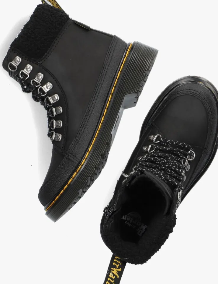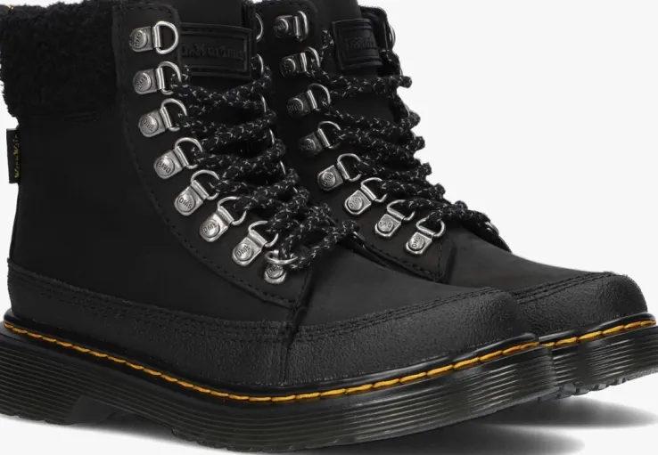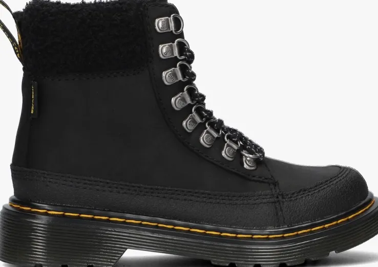 Je bent het coolste kind op het schoolplein met dezeminiversie van de 1460 veterboots van Dr.Martens!Deze zwarte boots 1460 COLLAR K zijn gemaakt van zacht nubuckleer en zijnniet alleen heel stoer en opvallend maar ook erg comfi én hip! De veterboots hebben de kenmerkende Dr. Martens accenten zoals de gegroefde zoolrand, de oversized hiellus, het gele stiksel, de metalen D-veterringen. Dit model heeft een handige ritssluiting om ze gemakkelijk aan- en uit te trekken en een heerlijk zachte textiele voering die ook te zien is op de gevoerde enkelkraag voor nog meer comfort. De schoen is gemaakt om lang mee te gaan en lekker te lopen en heeft daarom een extraflexibeleverlijmde loopzool, zodat groeiende voeten niet worden belemmerd. Deze rubberen zool is olie- en vetbestendigen biedt een goede schuur- en slipweerstand. *Maatadvies: schoenen van Dr. Martens moeten eerst goed ingelopen worden, maar daarna wil jenooit meer zonder!