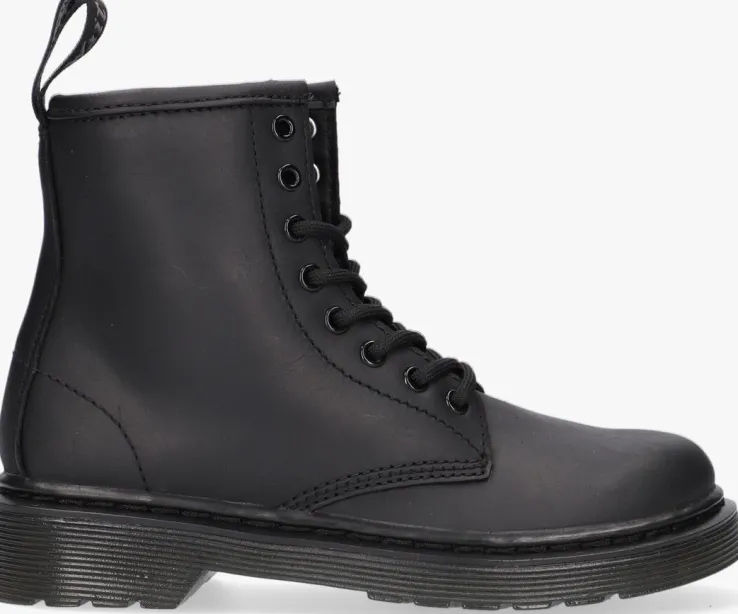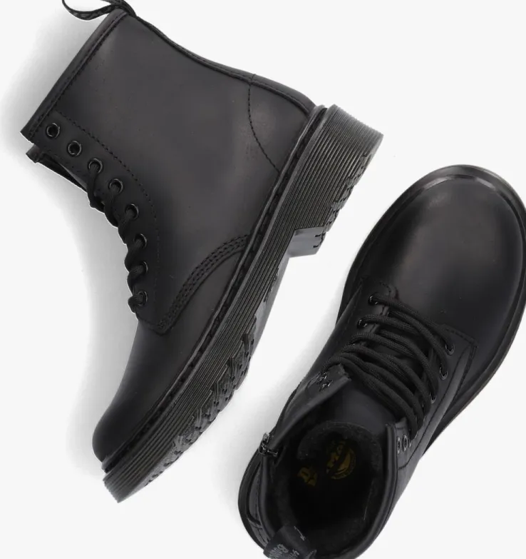 Je bent het coolste kind op het schoolplein met dezeminiversie van de 1460 veterboots van Dr.Martens!Deze zwarteboots 1460 K MONO zijn gemaakt van zacht Serena-leer enzijnniet alleen heel stoer en opvallend maar ook erg comfi én hip! De veterboots hebben de kenmerkende Dr. Martens accenten zoals de gegroefde zoolrand, de oversized hiellus, het grovestikselen de metalen veterogen. De voering is gemaakt van warme faux fur en heeft een vast voetbed. Dit model heeft een handige ritssluiting om ze gemakkelijk aan en uit te trekken.De schoen is gemaakt om lang mee te gaan en lekker te lopen en heeft daarom een extraflexibeleverlijmde loopzool, zodat groeiende voeten niet worden belemmerd. Deze rubberen zool is olie- en vetbestendigen biedt een goede schuur- en slipweerstand. *Maatadvies: schoenen van Dr. Martens moeten eerst goed ingelopen worden, maar daarna wil jenooit meer zonder!