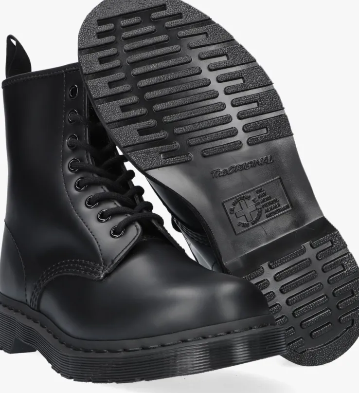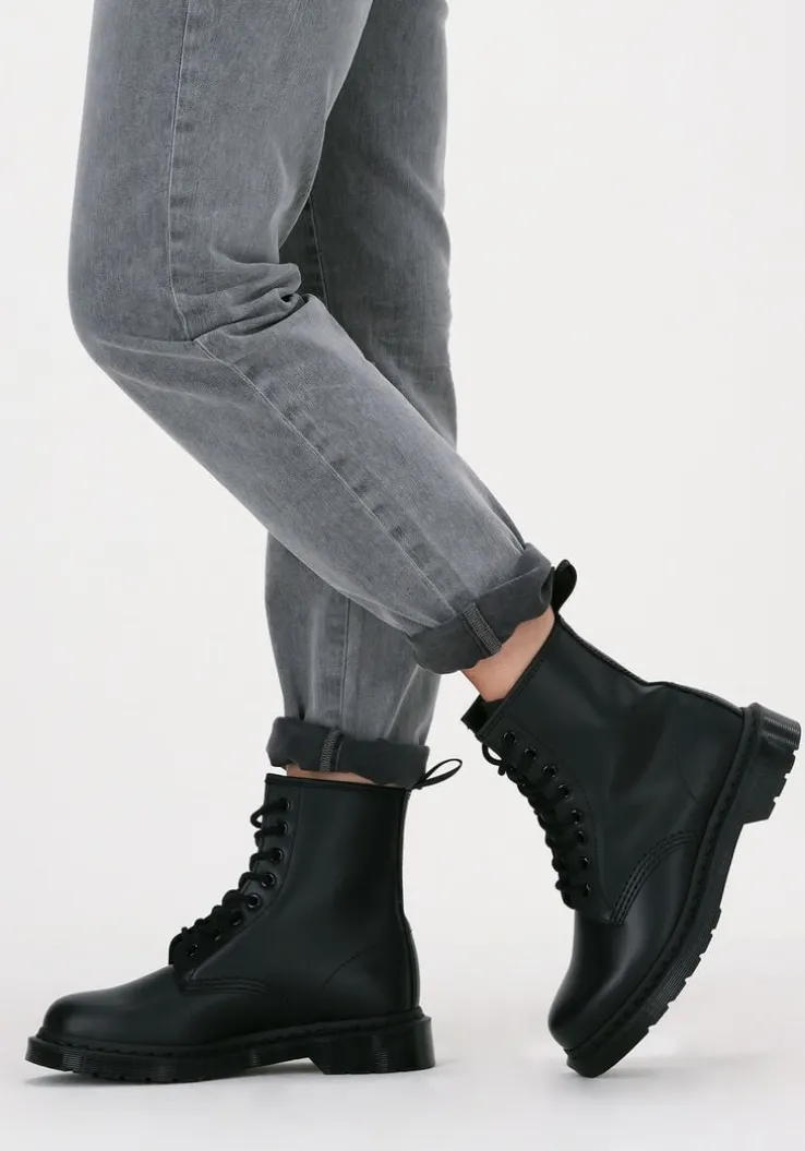 Trakteer je voetenoporigineleveterboots 1460 MONO van Dr.Martens!Deze all-black bootszijn gemaakt van origineel kwaliteitsleer van AirWair: stevig, afgewerkt leer met een soepel, halfglanzend uiterlijken ze zijnniet alleen heel stoer maar ook erg comfi én hip! De veterboots hebben de kenmerkende Dr. Martens accenten zoals het mooie leer, de gegroefde zoolrand, de oversized hiellus en de metalen veterogen. De schoen is gemaakt om lang mee te gaan en heeft daarom de welbekende Goodyear-zool met het iconische luchtkussen in de hak. Deze AirWair™ zool is olie- en vetbestendigen biedt een goede schuur- en slipweerstand. Draag ze onder een jeans of ga de uitdaging aan en match ze onder een rokje of jurkje. *Maatadvies: schoenen van Dr. Martens moeten eerst goed ingelopen worden, maar daarna wil je nooit meer zonder!