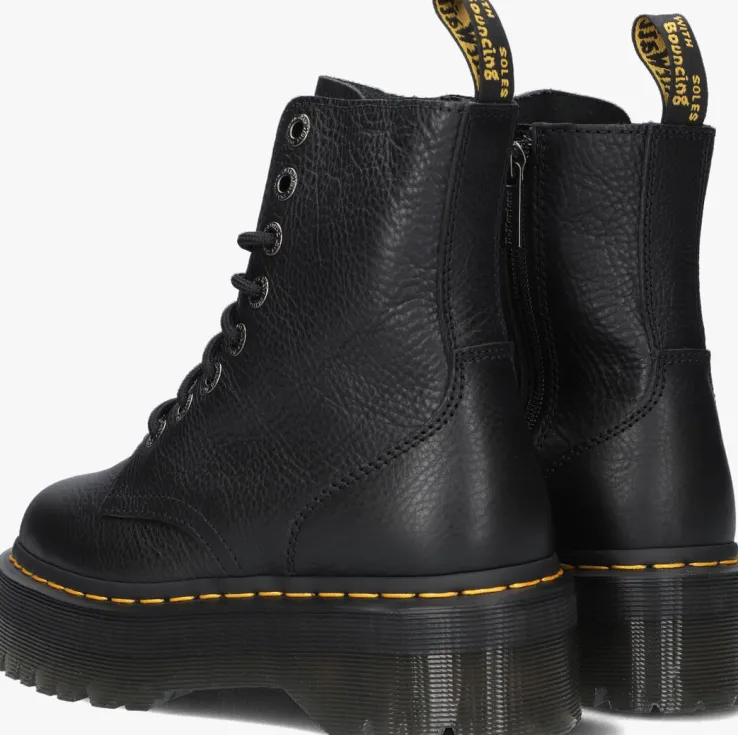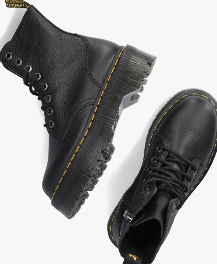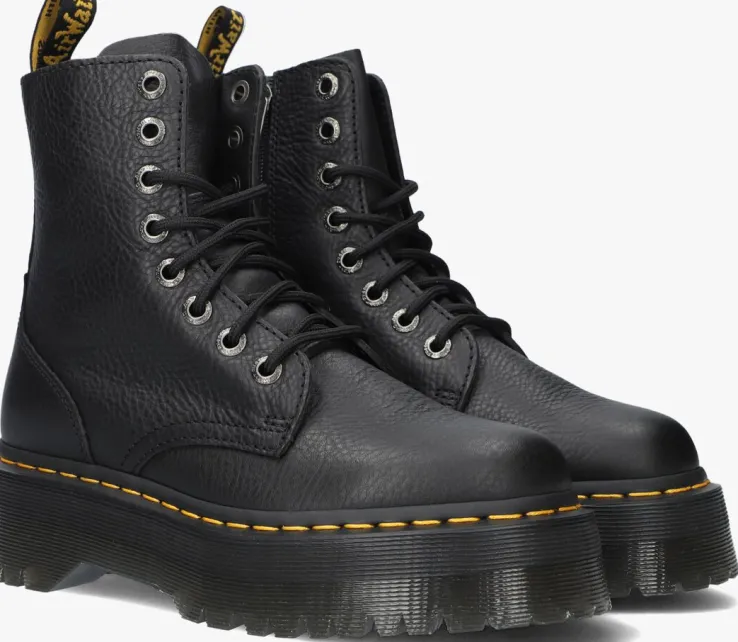 Trakteer je voetenop deze fraaie veterboots JADON III met platformzool van Dr.Martens!Deze zwarte bootszijn een vinnige evolutie van de bekende 1460-boots en hebben een dikke plateauzool die assertiviteit uitstraalt! Ze zijn gemaakt van duurzaam leer met een fijne structuur.Het binnenwerk is van textiel en het leren voetbed is niet uitneembaar. De rits op de zijkant zorgt voor een unieke look en je trek je boots er gemakkelijk mee aan en uit. De veterboots hebben de kenmerkende Dr. Martens accenten zoals het klassieke leer, de gegroefde zoolrand, de oversized hiellus, het gele stikselen de metalen veterogen. De schoen is gemaakt om lang mee te gaan en heeft daarom de welbekende Goodyear-zool met het iconische luchtkussen in de hak. Deze AirWairâ„¢ zool van 4,5 centimeter dik is olie- en vetbestendigen biedt een goede schuur- en slipweerstand. Draag ze onder een jeans of ga de uitdaging aan en match ze onder een rokje of jurkje. *Maatadvies: schoenen van Dr. Martens moeten eerst goed ingelopen worden, maar daarna wil je nooit meer zonder!