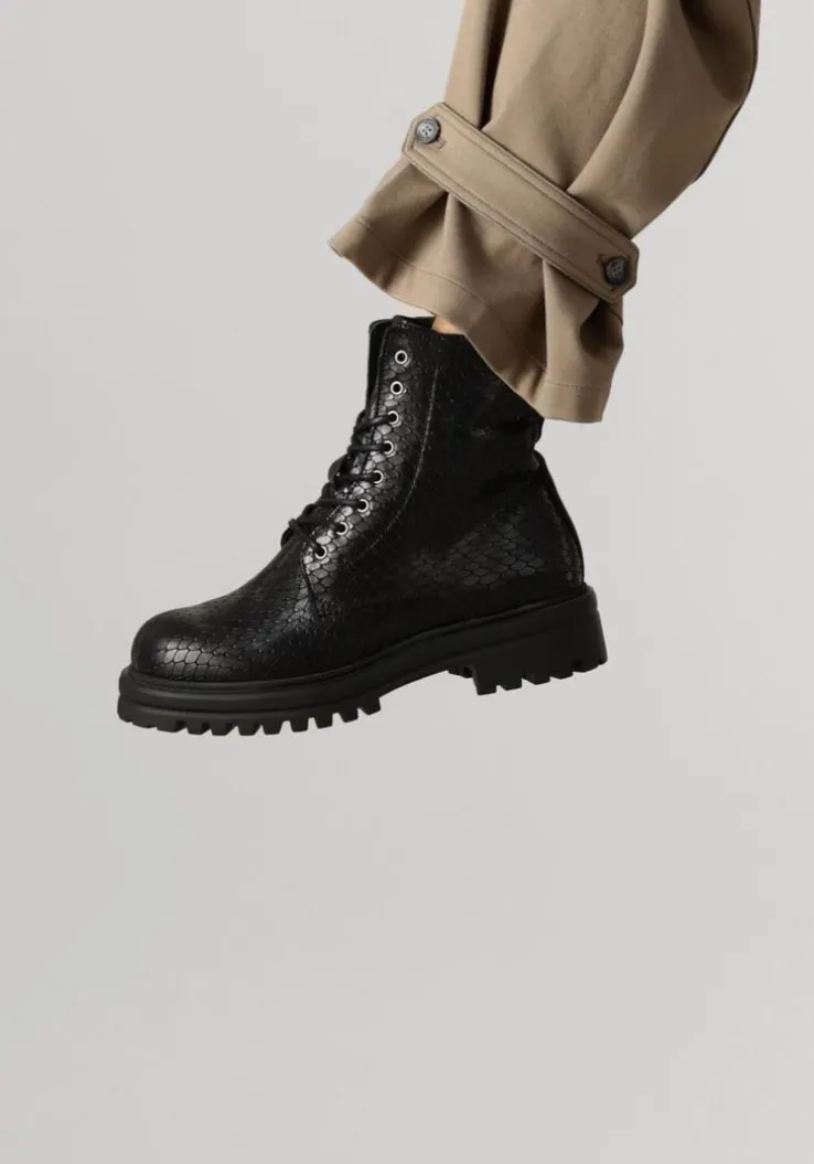 Stap stijlvol de dag in met de zwarte enkellaarzen WONKI 04.21 van FLORIS VAN BOMMEL. Deze laarzen, met een elegante krokodillenprint, zijn een must-have voor elke modebewuste dame. Gemaakt van hoogwaardig leer, zowel aan de binnen- als buitenkant, bieden ze ultiem comfort en duurzaamheid. De ronde neus en rubberen zool zorgen voor een perfecte pasvorm en grip. Met een schachthoogte van 17 cm en een handige ritssluiting trek je ze moeiteloos aan. Combineer ze met een strakke jeans of een stijlvolle rok voor een chique look. Perfect voor een dagje shoppen of een avondje uit.