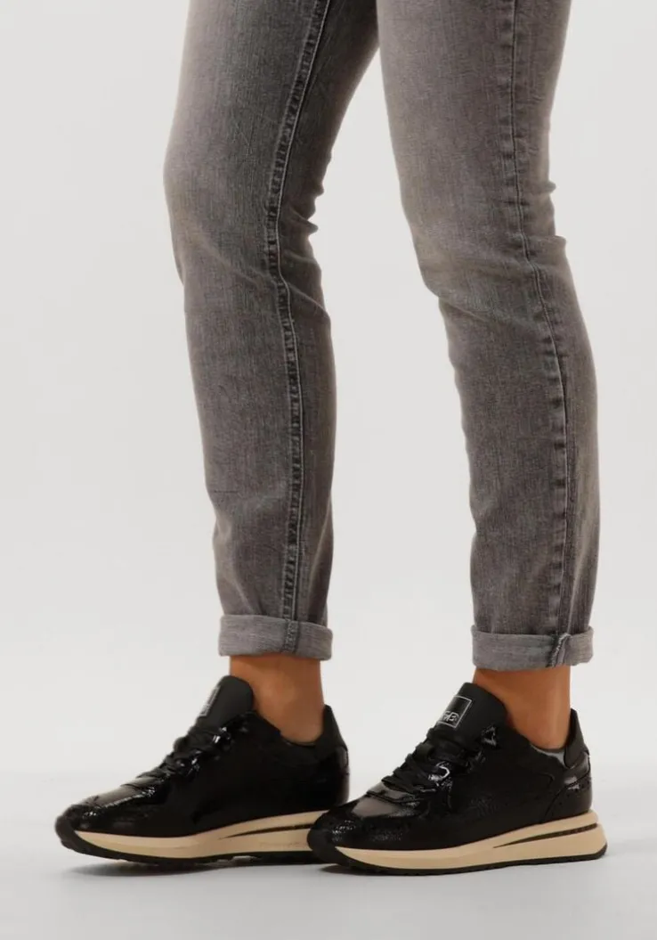 Voeg een vleugje glamour toe aan je dagelijkse look met de SUMI 07.08 lage sneakers van FLORIS VAN BOMMEL. Deze zwarte pareltjes zijn perfect voor een dagje shoppen of een ontspannen wandeling in het park. Het bovenwerk bestaat uit cracked lakleer met een hielstuk en tong van zwart leer. De voering is gemaakt van leer en het voetbed is uitneembaar. Extra tof is het rubberen logo op de tong, de ronde uitsnijdingen in het leer en de gekartelde tussenzool. Combineer ze moeiteloos met een strakke jeans en een casual T-shirt voor een trendy, maar comfortabele outfit. Of draag ze onder een zomerse jurk voor een speelse twist. De glanzende kleur zorgt ervoor dat je altijd straalt, waar je ook gaat. Deze sneakers zijn niet alleen stijlvol, maar ook super comfortabel. Een must-have voor elke modebewuste dame!