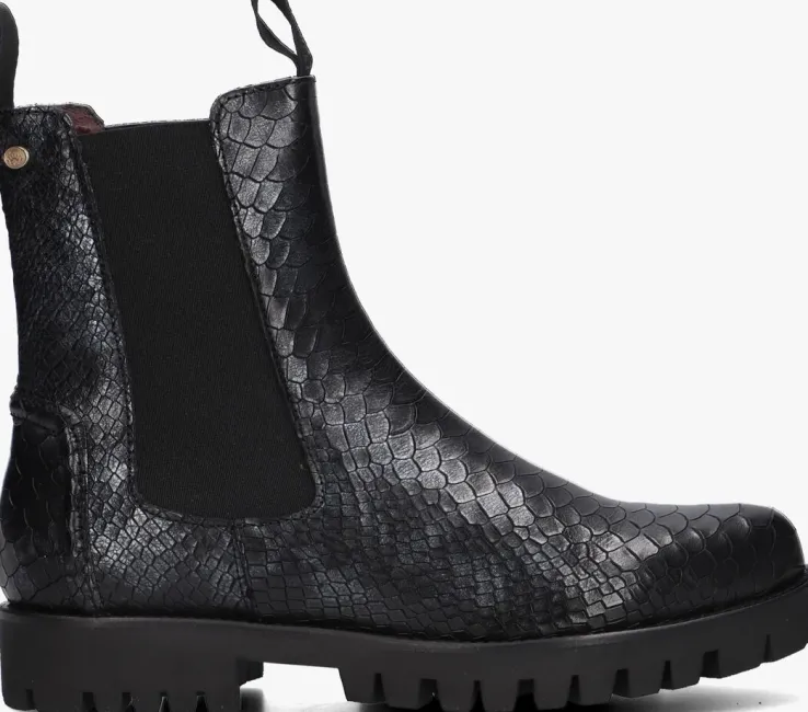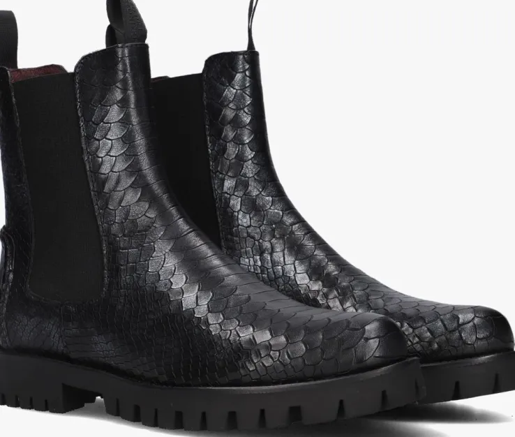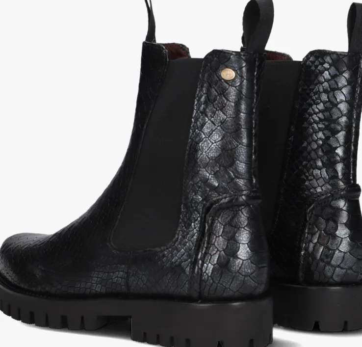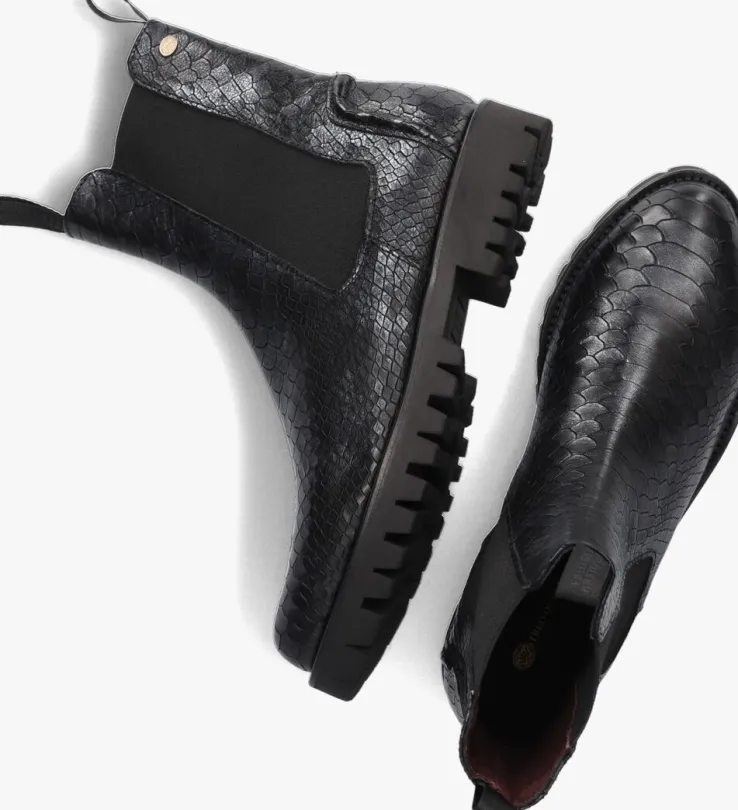 De perfecte combinatie van stoer en comfortabele pasvormen, dat is deze zwarte chelseaboot MINOU CHELSEA crocoprint van het merk Fred de la Bretoniere. Het bovenwerk isuitgevoerd in zacht leer met een binnenwerk van leer met een vast voetbed.Door de handige aantreklussen van textiel op het bovenwerk in combinatie met de elastische zijpanelen trek je de boot gemakkelijk aan-en uit. De boot heeft een mooie glans en is afgewerkt met een goudkleurige merkstud op de schacht. De rubberen zool met chunky uiterlijk is onder de voorvoet 2 centimeter hoog en loopt naar achteren toe op tot 3 centimeter, terwijl de schacht hoogte 16 centimeter is, gemeten bij maat 38. Combineer ‘mbij ontelbare vrouwelijkeoutfits en klaar ben je!