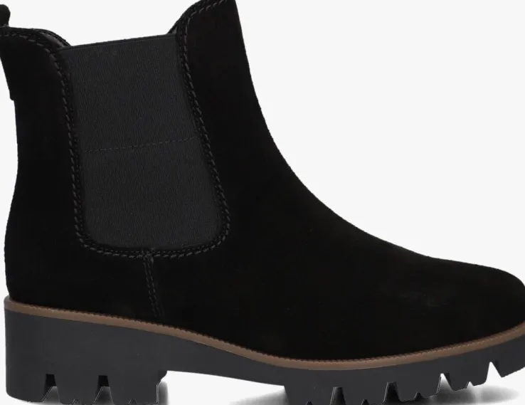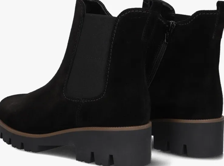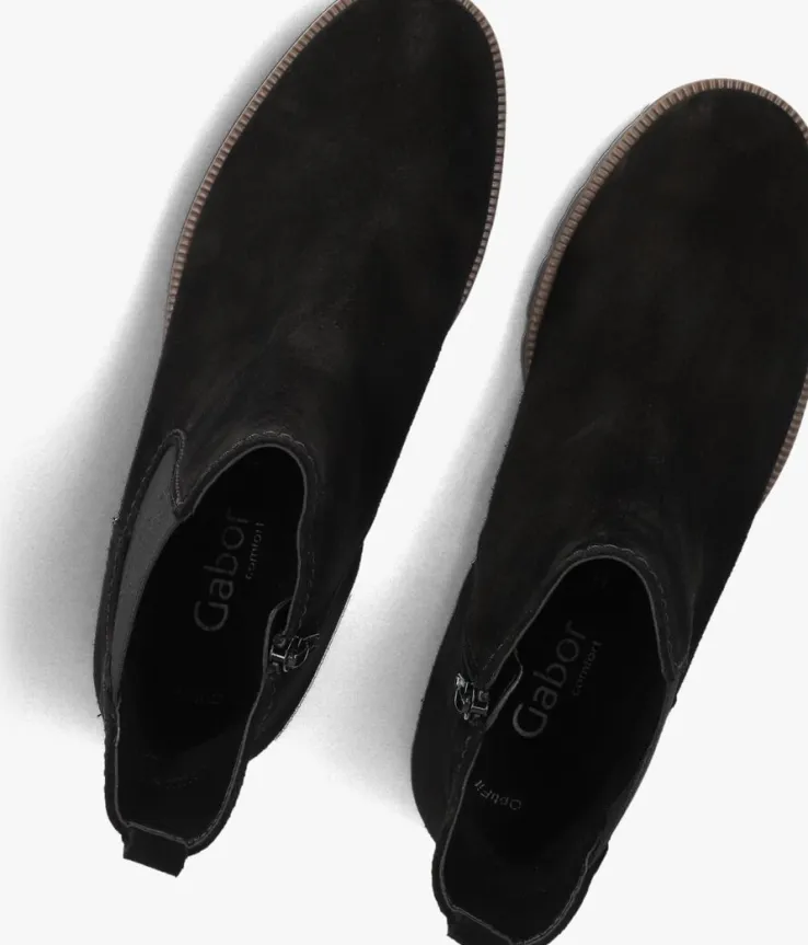 Maak je outfit compleet met deze zwarte suède Chelsea boots van GABOR. De ronde neus en de schachthoogte van 13 cm geven een elegante touch aan je outfit. Dankzij de ritssluiting en elastische paneel trek je ze moeiteloos aan en uit. Het leren binnenwerk en het uitneembare voetbed zorgen voor optimaal comfort, zelfs tijdens een lange wandeling of een dagje shoppen. De rubberen zool biedt grip en stabiliteit. Combineer deze boots met een strakke jeans of een stijlvolle rok voor een veelzijdige look. Perfect voor zowel casual als chique gelegenheden.