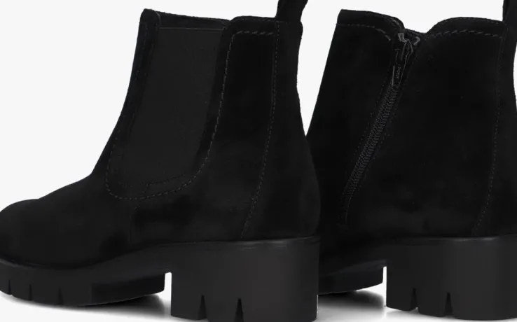 Ben je op zoek naar een toffe chelsea boot maar dan net even wat stoerder? Dan zit je met dit model 710 uit de Best Fitting collectie van het merk Gabor helemaal goed. Schoenen uit de Best Fitting collectie hebbeneen iets smallere F-wijdte aan de achterkant van de voet, maar ook een breder loopvlak voor extra ruimte op de voorvoet. Dit model is uitgevoerd in zwartsuède en heeft een brede elastieken inzet aan de zijkant. Het elastiek zorgt voor een prettig loopcomfort en met de handige zijrits trek jede schoen eenvoudig aan en uit. Het binnenwerk is voorzien van een voering van textiel met een uitneembaar voetbed. De dikke zool met grof profiel geeft de schoen een stoere look, terwijl de dikke groeven voor een goede grip en flexibilteit zorgen. De zool is ruim 2 centimeter dik onder de voorvoet en de hak heeft een hoogte van bijna 5 centimeter. De schacht met kleine aantreklus is bijna 12 centimeter hoog.Match ze onder jouw lievelingsbroek of -jurk en je bent klaar voor een mooie, nieuwe dag!