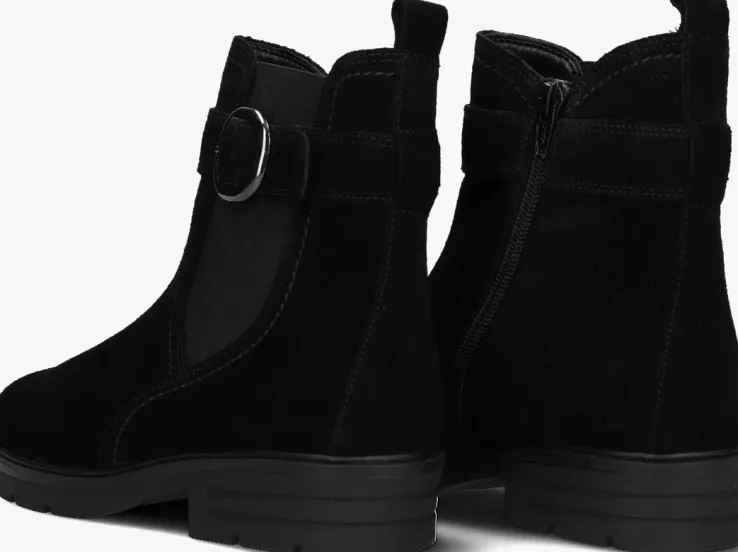 Met deze trendy enkellaarzen van GABOR ben jij helemaal klaar voor het nieuwe seizoen! De zwarte suède buitenkant geeft de laarzen een stijlvolle uitstraling, terwijl de elastische inzet met siergesp zorgt voor een speels effect. De chunky zool geeft niet alleen een stoere touch aan de laarzen, maar zorgt ook voor extra comfort. De laarzen sluiten gemakkelijk met een rits aan de zijkant. Combineer deze enkellaarzen met een mooie jeans en een oversized trui voor een casual look. Of draag ze onder een jurkje voor een trendy en vrouwelijke uitstraling. Met deze GABOR enkellaarzen ben jij altijd on-trend!