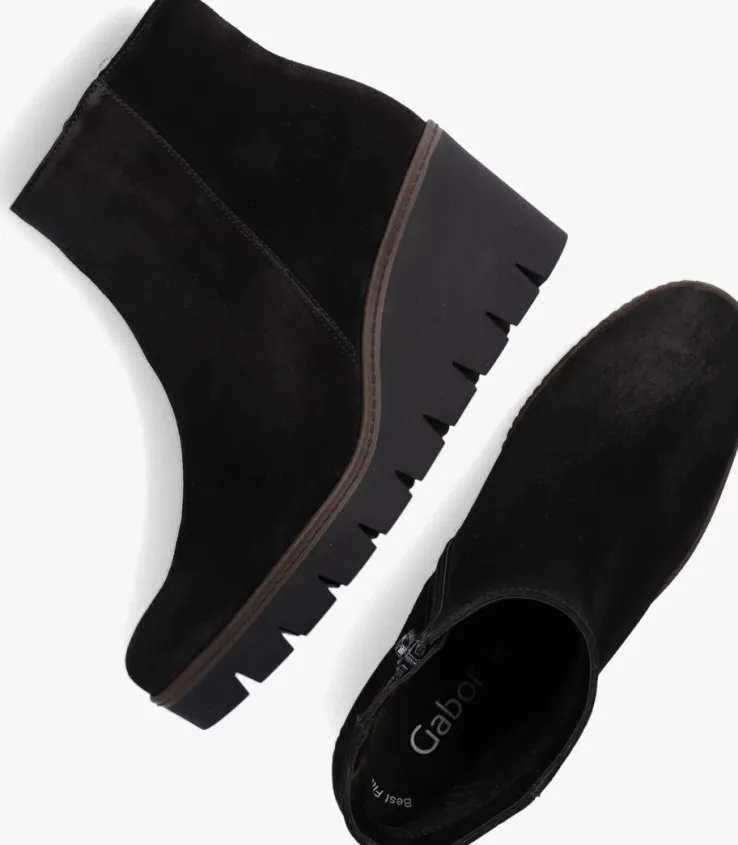 Trendy & comfortabel! Deze zwarte enkellaars 780.1 met sleehak uit de Best Fitting-collectie van het merk Gabor heeft een smalle F-wijdte, maar ookeen breder loopvlak op de voorvoet voor extra ruimte op de bal van de voet. Dit model is uitgevoerd in zacht suède meteen binnenvoering van zacht textiel en een uitneembaar voetbed. Met de handige ritssluiting aan de binnenkanttrek je ‘m makkelijk aan en uit. Het laarsje heeft een rubberen zool met diepe groeven voor veel grip en de vrouwelijke sleehakzorgt voor een hoog loopcomfort. Hetplateau onder de voorvoet is 2,5 centimeter dik en de hakhoogte is 7 centimeter. De schacht heeft een hoogte van bijna 12 centimeter,gemeten bij maat 37. Match zeonder jouw lievelingsbroek of -jurk en je bent klaar voor een mooie, nieuwe dag!