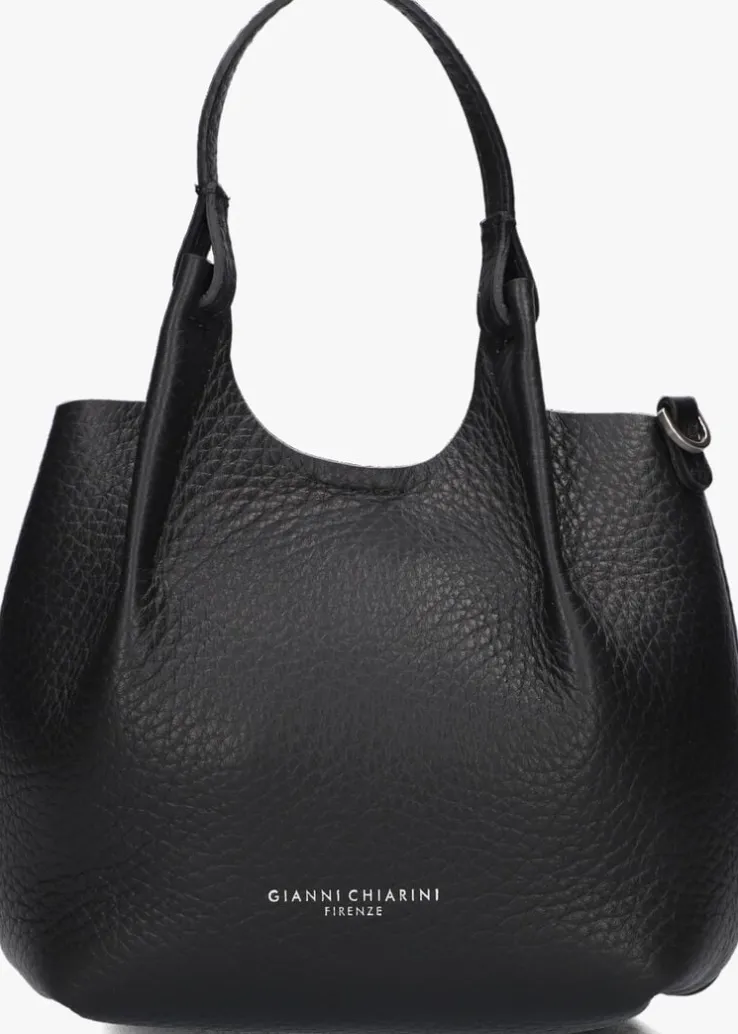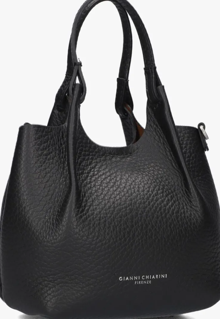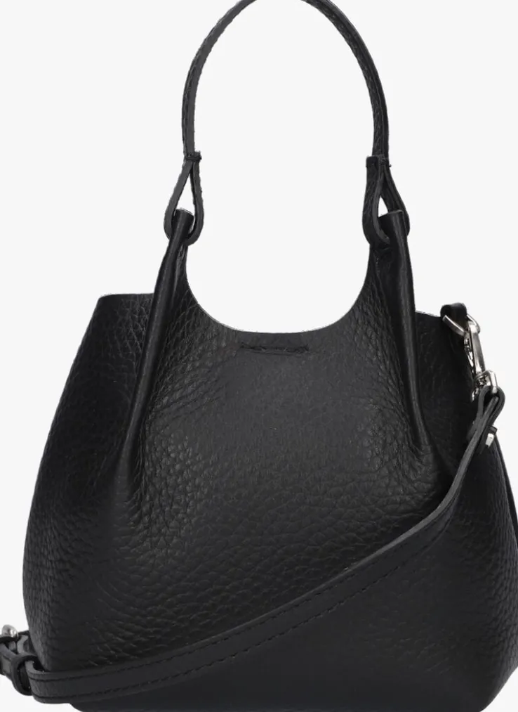 Deze zwarte handtas is een echte eyecatcher! De tas DUA ONE is van het merk Gianni Chiarini en is gemaakt van soepel gestructureerd leer. Dit model heeft de uitstraling van een handtas, maar is lekker klein, handig voor wanneer je gaat winkelen in de stad! Op de voorzijde prijkt een zilverkleurig merkembleem en je kunt ‘m gemakkelijk met je meenemen aan de twee smalle handvaten. De tas heeft een magneetsluiting en het grote vak is met bruin leer gevoerd. Als je liever je handen vrij hebt, kan je het leren hengsel bevestigen aan de zijkant. Dit model maakt elke outfit leuk en past overal bij! De afmetingen zijn: 17 x 10 x 16 centimeter (lengte x breedte x hoogte)