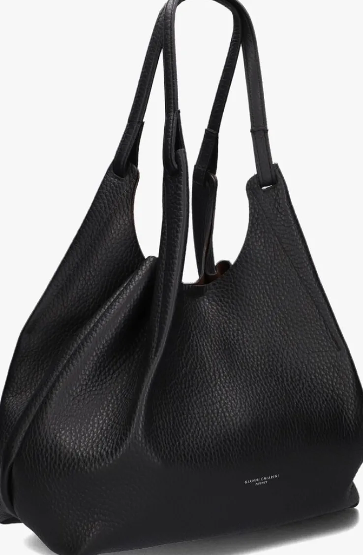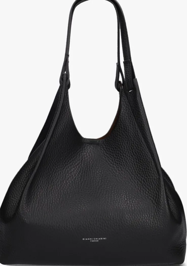 Deze zwarte schoudertas is een eyecatcher! De tas is van het merk Gianni Chiarini en is gemaakt van soepel gestructureerd leer. Het vak gaat gemakkelijk dicht door de magneet sluiting aan de bovenkant. In de schoudertas zit een tasje met ritssluiting. De bruine binnenkant is ook van leer. De bovenkant is 55 centimeter lang, de breedte is 35 centimeter en de hoogte is 29 centimeter.