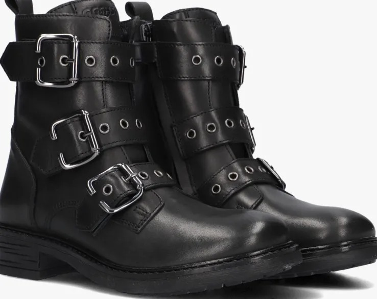 Maak kennis met de stoere G4340 boots voor meisjes. Deze zwarte leren boots met drie siergespen zijn perfect voor avontuurlijke dagen in het park of een middagje shoppen met vriendinnen. Dankzij de ritssluiting trek je ze makkelijk aan en uit. Het uitneembare voetbed zorgt voor extra comfort, terwijl de rubberen zool grip biedt op elke ondergrond. Combineer deze boots met een trendy jeans of een schattig jurkje voor een stijlvolle look. De leren binnenkant houdt je voeten de hele dag fris en comfortabel.