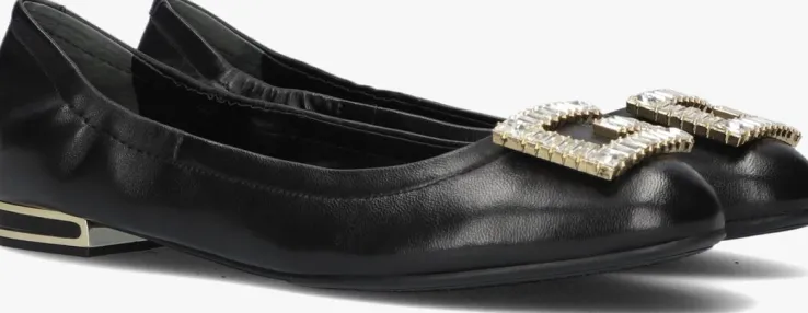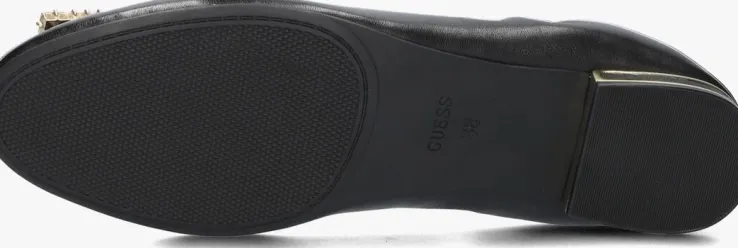 Deze zwarte ballerina’s MICKLE van GUESS zijn trendy schoenen die perfect zijn voor dames die op zoek zijn naar comfort en stijl. Dit smalle model van leer heeft een oversized G-logo op de voorvoet met diamantjes. Draag ze tijdens een dagje shoppen in de stad of tijdens een gezellige lunch met vriendinnen. De voering bestaat ook uit leer en het voetbed is niet uitneembaar. De ballerina sluit mooi aan op je voeten, door het licht gesmokte hielstukje. Combineer ze met een zwarte skinny jeans en een oversized blouse voor een moeiteloos chique look. De rubberen zool heeft een mini hakje van 1 centimeter en is afgewerkt met een goudkleurig element. De rubberen loopzool zorgt voor uistekend veel grip en stabiliteit!
