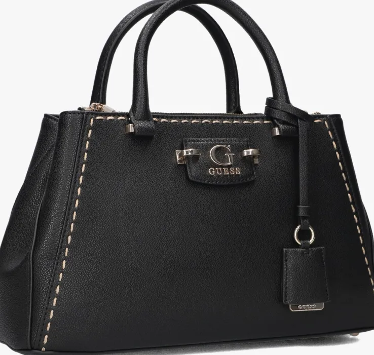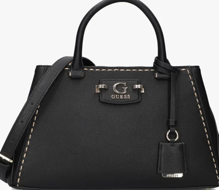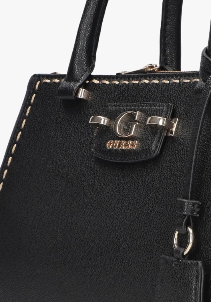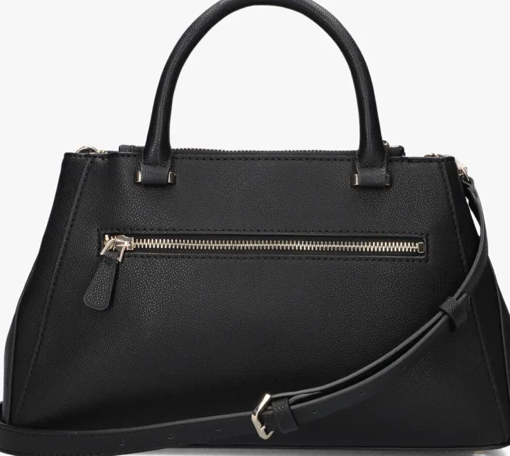 Ontdek de veelzijdigheid van de NASTRA SOCIETY SATCHEL van GUESS. Deze elegante zwarte handtas is de perfecte metgezel voor de moderne dame. De tas heeft goudkleurige details en biedt genoeg ruimte voor al jou essentials. Of je nu een dagje gaat shoppen of een avondje uit plant, deze tas is jou ideale metgezel. Combineer ‘m moeiteloos met een stijlvolle blazer en een paar strakke jeans voor een chique look. De subtiele details en het verfijnde design maken deze tas tot een tijdloze toevoeging aan je garderobe. Voeg een vleugje klasse toe aan je outfit en geniet van de praktische elegantie die deze satchel biedt.