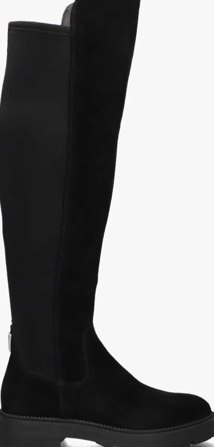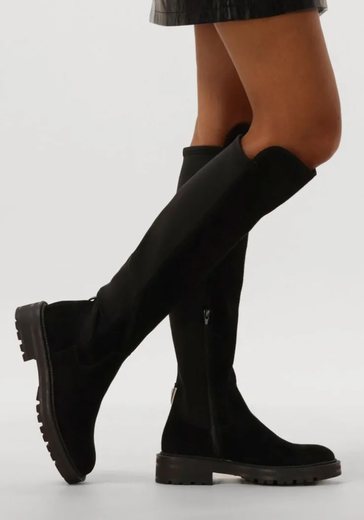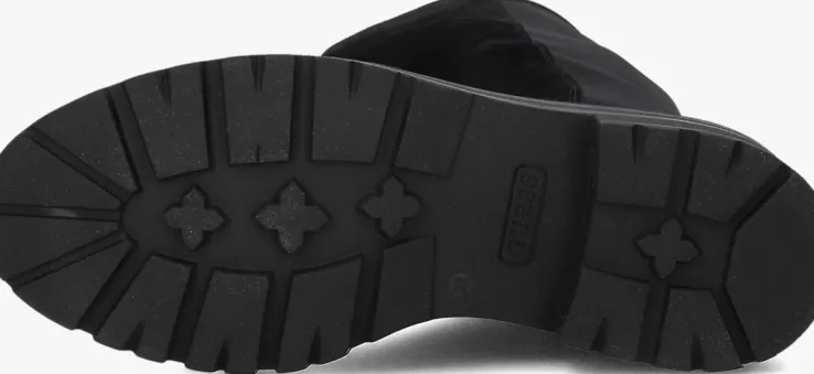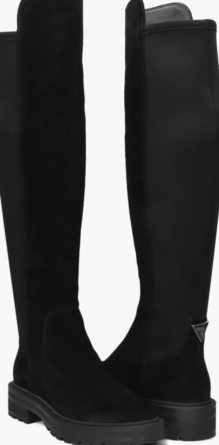 Het bekende, Amerikaanse merk GUESS ontstond in 1981 en staat symbool voor een luxueuze, jeugdige, sexy en avontuurlijke levensstijl. Het merk maakt trendy items die jouw outfit de juiste touch geven. Deze lange laars CARMEN doet dat zeker! Dit model is uitgevoerd in zwart suéde met textiel en heeft een iets hogere schacht aan de voorkant. Opvallende details zijn het merkembleem op enkelhoogte, de afwerking van reliëf op de zoolrand en de dubbele stiksels. Je trekt de laars eenvoudig aan door de achterkant van textiel en de ritssluiting aan de onderkant. De voering is ook van textiel en de laars heeft een vast, leren voetbed met comfortabele demping. Dit model heeft een schachthoogte van 45 centimeter (gemeten bij maat 37) en is door de verhoging van de schacht 3,5 centimeter hoger aan de voorkant. De chunky, rubberen zool heeft een grof profiel voor veel grip, is onder de voorvoet 2,5 centimeter hoog en heeft een hakhoogte van 4 centimeter. Draag deze laarzen onder een jurk of korte rok en je bent helemaal on trend!
