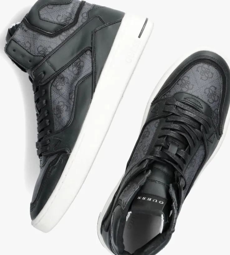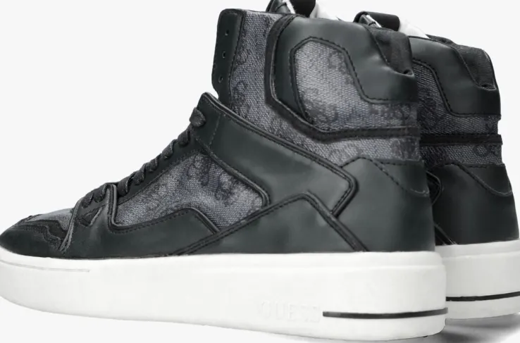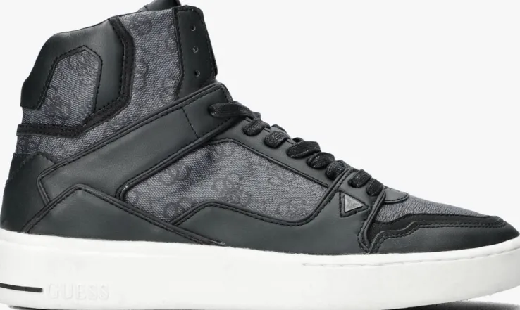 Deze gave, hoge sneaker is van het bekende merk GUESS. Dit model VERONA BASKET MID is uitgevoerd in zwart leatherlook met een grijze logoprint en heeft verschillende panelen. Opvallende details zijn het merklabel op de tong, het merkreliëf op de zoolrand, de zwarte streep op de zoolrand en de merkemblemen op de zijkant. De voering is van textiel en de enkelkraag is opgevuld voor extra comfort. Het uitneembare voetbed heeft een comfortabele demping en de rubberen loopzool met gripvast profiel zorgt voor voldoende stabiliteit. Een comfy én trendy sneaker die je eindeloos combineert!