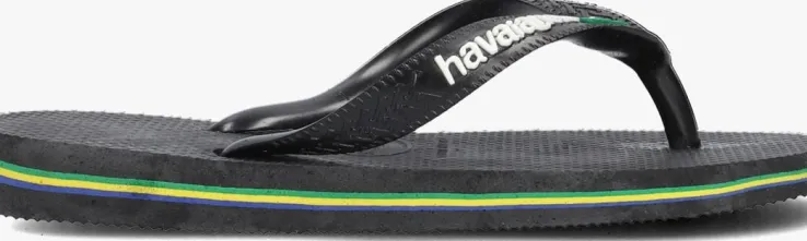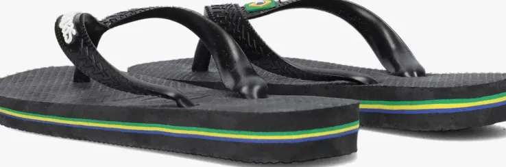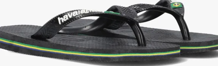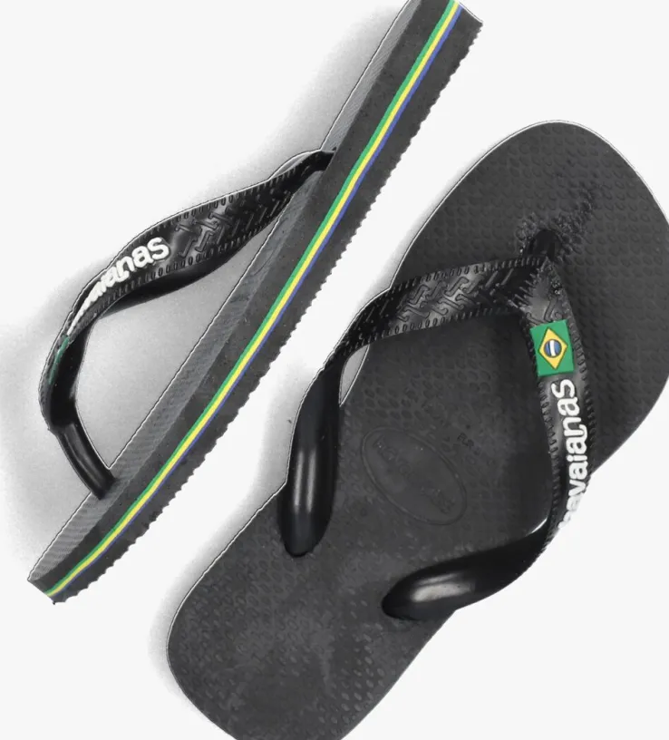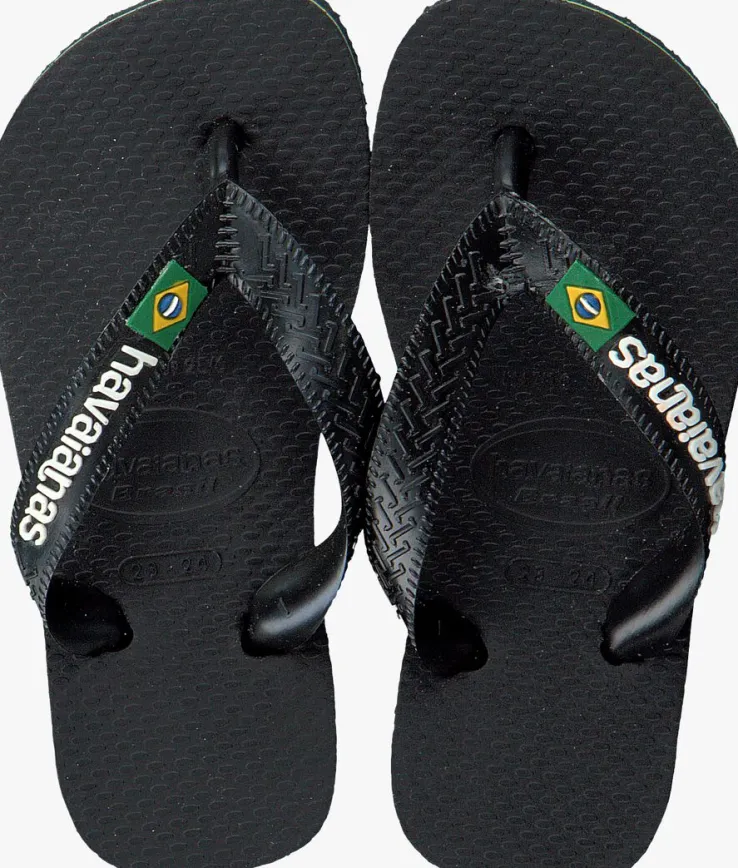 Een absolute zomer must-have van het Braziliaanse merk Havaianas; dat is deze zomerse BRASIL LOGO KIDS slipper. Dit zwarte exemplaar heeft de kleuren van de Braziliaanse vlag in dunne lijntjes in de zool. Op de bandjes zijn demerknaam in reliëfen de Braziliaanse vlag te vinden. De slipper is comfortabel, duurzaam, lichtgewicht, anti-slip, hittebestendig én waterresistant. Wat wil je nog meer? Dat de zon schijnt en jouw kindze de hele dagkan dragen natuurlijk!*De slippers in de maten 17/18 tot en met 23/24 hebben een elastieken bandje aan de achterkant, zodat ze goed aan het voetje blijven zitten. De slippers vanaf maat 25/26 hebben geen hielbandje meer.