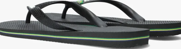 Een absolute zomer must-have van het Braziliaanse merk Havaianas; dat is deze zomerse BRASIL LOGO slipper. Dit zwarte exemplaar heeft de kleuren van de Braziliaanse vlag in dunne lijntjes in de zool. Op het bandje staan de merknaam in reliëfen de Braziliaanse vlag. De slipper is comfortabel, duurzaam, lichtgewicht, anti-slip, hittebestendig én waterresistant. Wat wil je nog meer? Dat de zon schijnt en je ze de hele dagkan dragen natuurlijk!