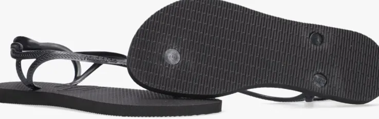 Een absolute zomer must-have van het Braziliaanse merk Havaianas; dat is deze eleganteLUNA sandaal. Dit zwarte exemplaar heeft smalle bandjes voor een extra feminin look en een handige slingback, zodat hij goed om je voet blijft zitten. Ophet bandjeis de merknaam in reliëf te vinden. De sandaal is comfortabel, duurzaam, lichtgewicht, anti-slip, hittebestendig én waterresistant. Wat wil je nog meer? Dat de zon schijnt en je ze de hele dagkan dragen natuurlijk!