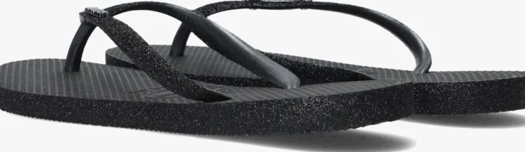 Wauw! Het meest iconische model van het Braziliaanse merk HAVAIANAS in een vrouwelijk jasje; dat is deze zomerse SLIM SPARKLE II slipper. Dit toffe zwarte exemplaar is helemaal klaar voor de zomer! Zo heeft hij dunne bandjes die afgewerkt zijn met trendy glitters die ook terug komen in de tussenzool, waardoor deze slipper een extra feminin look heeft. De slipper is comfortabel, duurzaam, lichtgewicht, anti-slip en hittebestendig. Wat wil je nog meer? Dat de zon schijnt en je de hele dag kan stralen met deze toffe slippers!