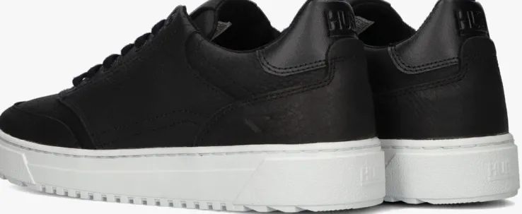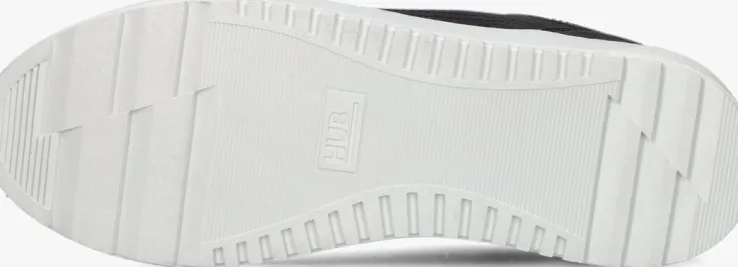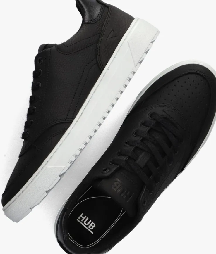 Stap in stijl met de ROYAL-S lage sneakers van HUB voor heren. Deze zwarte schoenen zijn perfect voor elke gelegenheid. Met hun tijdloze design en comfortabele pasvorm zijn ze ideaal voor dagelijks gebruik. Dit model heeft een bovenwerk van structuurleer met stoere overlays en heeft toffe accenten. De voorvoet is voorzien van perforaties, op de tong prijkt een merklabel, de hielcap bestaat uit glanzend leer, de metalen veterringen hebben een merkreliëf en de zijkant is afgewerkt met een merkopdrukje. Combineer ze met een jeans en een casual shirt voor een relaxte look. Of draag ze onder een chino en een nette blouse voor een meer geklede outfit. De voering bestaat uit leer en het dempende voetbed is uitneembaar. Je ervaart een uitstekend comfort door de witte loopzool met gripvast profiel.