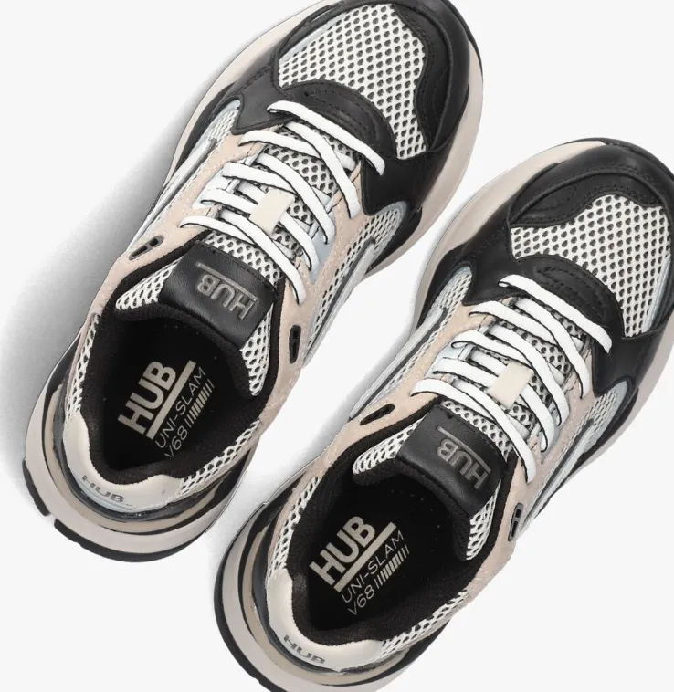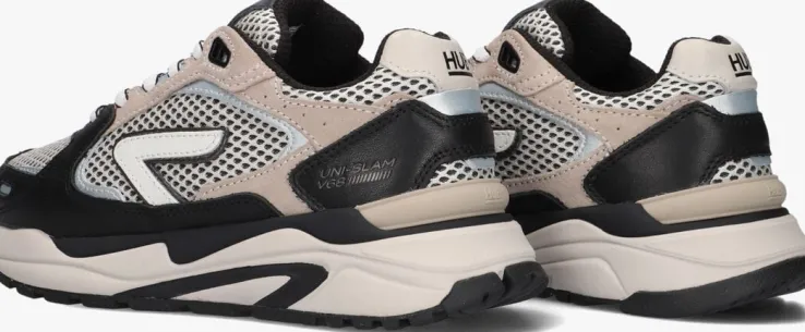 beige hub lage sneakers grid-w