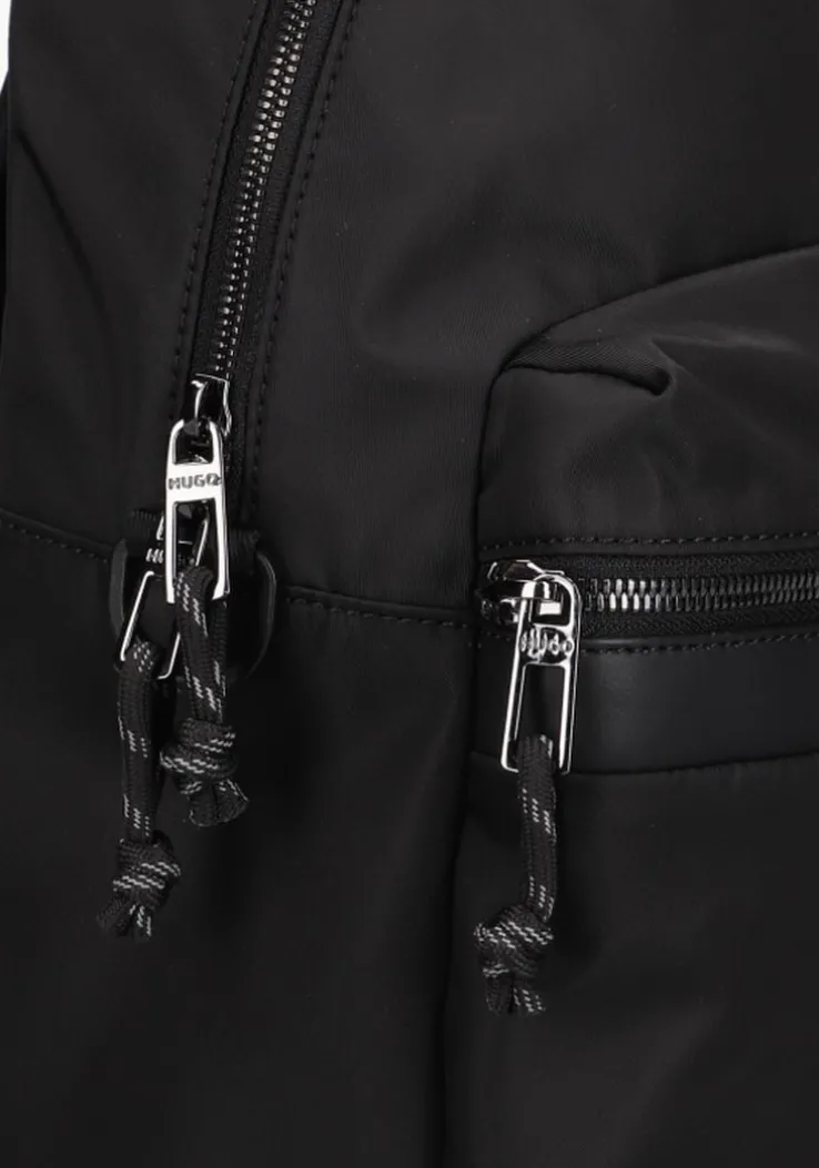 Met de WAYNER BACKPACK van HUGO ben je helemaal klaar voor elke dagelijkse uitdaging. Deze zwarte rugtas is speciaal ontworpen voor heren en gemaakt van hoogwaardig nylon. De ruime binnenkant biedt voldoende opbergruimte voor al je essentials. Op de voorkant prijkt een groot ritsvak, de achterkant is gemaakt van mesh textiel en de schouderbanden zijn verstelbaar en heeft merkopdrukken. Of je nu naar je werk gaat of een dagje eropuit trekt, deze tas is perfect voor elke gelegenheid! Draag hem comfortabel op je rug en geniet van de praktische indeling. De afmetingen zijn: 29 x 13 x 38 centimeter (lengte x breedte x hoogte)