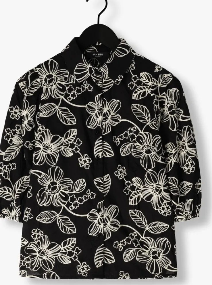 Voeg wat flair toe aan je garderobe met de WGE722 EMBROIDERED BLOUSE 3/4 PUFFED SLEEVE van JANSEN AMSTERDAM. Deze zwarte blouse met prachtig borduurwerk en pofmouwen is perfect voor een chique avondje uit of een dagje op kantoor. Combineer het met een zwarte skinny jeans en hoge hakken voor een elegante look, of draag het met een leren rok en enkellaarsjes voor een stoere twist. Met deze blouse ben je altijd stijlvol gekleed, dames!