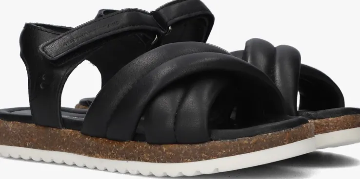 Straal met deze sandalen BLOSSOM van het merk JOCHIE & FREAKS! Dit model is gemaakt van zwart leer en heeft twee gekruiste, gewatteerde banden over de voorvoet. Om de enkel zitten dunne bandjes en het bandje om de hiel is ook gewatteerd voor extra comfort. Het enkelbandje heeft een klittenbandsluiting om het sandaaltje goed passend te maken. Het hielstukje is opgevuld voor nog meer comfort. De sandaal is leer gevoerd en het voetbed heeft een zachte demping. De bruine zool van kurk en de witte zool van rubber met kartelprofiel geeft dit model een stoere look en super veel grip!