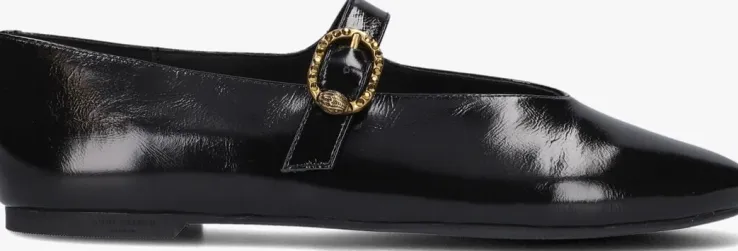 Stap stijlvol de dag in met de MAYFAIR BALLET ballerina’s van KURT GEIGER LONDON. Deze zwarte pareltjes combineren elegantie met comfort. Perfect voor een dag op kantoor of een gezellige lunch met vriendinnen. De ballerina’s zijn gemaakt van zwart lak leer. Aan de bovenzijde is een bandje met een goudkleurige gesp te vinden met daarop het welbekende aadelaarshoofd en goudkleurige strassteentjes. De binnenvoering is van leatherlook en heeft een lederen voetbed. De rubberen zool heeft een gripvast profiel waarmee je heel de dag door kunt wandelen. Voeg een vleugje Londense klasse toe aan je dagelijkse stijl met deze prachtige ballerina’s.