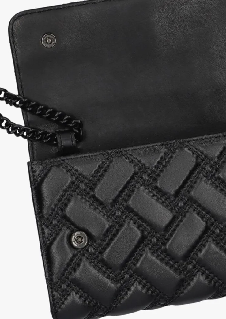 Met de KENSINGTON CHAIN WALLET D van KURT GEIGER LONDON maak je een fashion statement! Deze zwarte schoudertas is perfect voor dames die op zoek zijn naar stijl en functionaliteit. Draag hem over je schouder en je hebt je handen vrij voor al je activiteiten. De zwarte tas is gemaakt van doorgestikt en gewatteerd leer. De tas is gesierd van een zwart metalen adelaar met zwarte strass-steentjes. Onder de klep zitten twee drukknoppen en de voering is gemaakt van textiel. Er is ruimte voor zes pasjes en er zit één steekvak in, verder bevind zich in het midden een handig ritsvak. Ook aan de achterzijde bevind zich een steekvak. Je kunt ‘m zowel gebruiken als portemonnee, clutch en schoudertas dankzij de afneembare metalen schakelketting. Met deze tas ben je altijd on-trend! Afmetingen: 20 x 3 x 12 cm (lengte x breedte x hoogte)