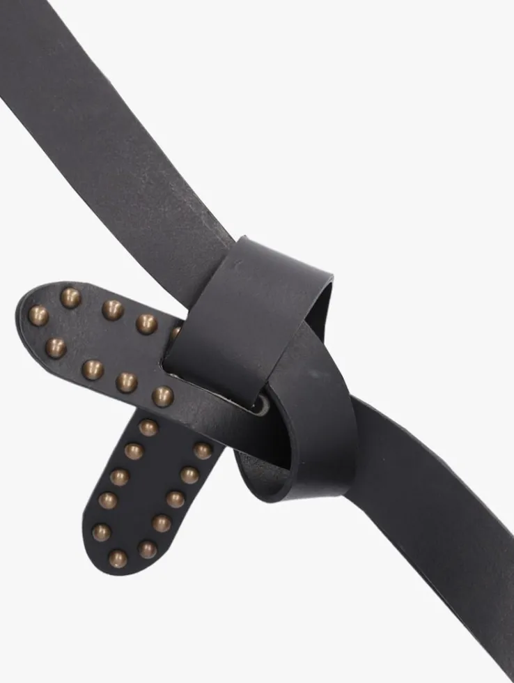 Maak je outfit af met deze stoere zwarte riem 35154 met mat goudkleurige bolstuds van het merk Legend. De riem is uitgevoerd in leer en heeft een bijzondere sluiting door middel van een gleufje. Het riempje is 3,5cm breed en in verschillende lengtematen verkrijgbaar. Riemen van Legend zijn altijd gemaakt van chroomvrij leer en hebben nikkelvrije gespen. Ook leuk om cadeau te geven!
