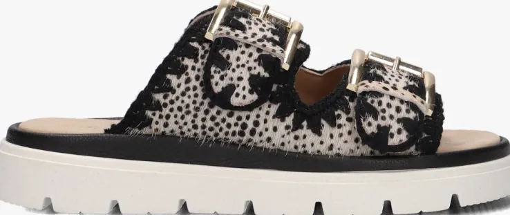 Stap stijlvol de lente en zomer in met de DILAN slippers van Maruti. Deze zwarte eyecatchers zijn gemaakt van ponyhair-leer aan de buitenkant, wat zorgt voor een unieke look. De binnenkant is gevoerd met zacht leer voor extra comfort. Perfect voor een ontspannen dagje in het park of een zomerse picknick. Combineer ze moeiteloos met een luchtige maxi-jurk of een trendy korte broek voor een casual, maar chique uitstraling. Laat je voeten ademen en geniet van de zon met deze veelzijdige slippers die je outfit net dat beetje extra geven.