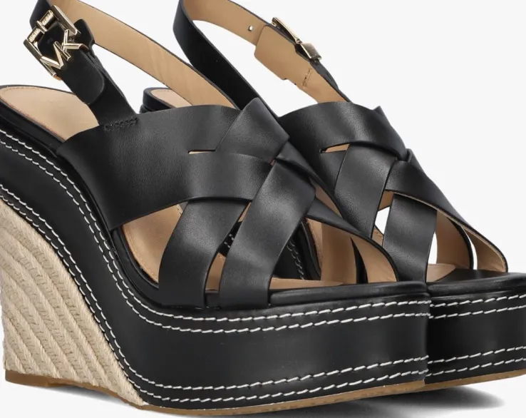 Stap stijlvol de lente en zomer in met de NORA WEDGE sandalen van MICHAEL KORS. Deze zwarte eyecatchers zijn perfect voor een dagje shoppen in de stad of een ontspannen wandeling langs de boulevard. De buitenkant is gemaakt van leer, terwijl de binnenkant je voeten comfortabel omhult met zacht textiel. Combineer ze moeiteloos met een luchtige maxi-jurk of een trendy korte broek voor een frisse, zomerse look. De subtiele sleehak geeft je net dat beetje extra hoogte zonder in te boeten op comfort. Geniet van zonnige dagen met deze veelzijdige sandalen aan je voeten.