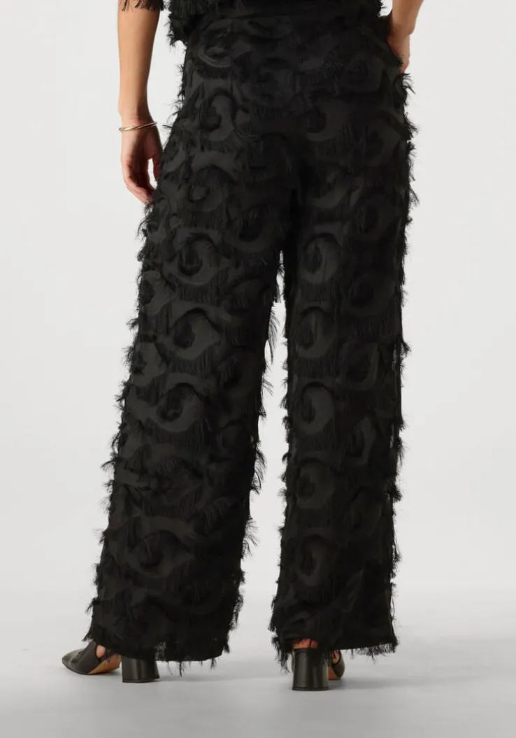 Ontdek de veelzijdigheid van de MSMAICA HIGHWAISTED PANT van MINUS. Deze zwarte pantalon heeft elegante franjes en is een must-have voor dames die stijl en comfort willen combineren. Perfect voor een dag op kantoor of een avondje uit met vriendinnen. De hoge taille zorgt voor een flatterende pasvorm en accentueert je silhouet. Combineer met een elegante blouse voor een chique look of draag met een casual trui voor een relaxte vibe. De tijdloze zwarte kleur maakt het eenvoudig om te mixen en matchen met je favoriete kledingstukken. Voeg deze stijlvolle pantalon toe aan je garderobe en geniet van eindeloze combinatiemogelijkheden.