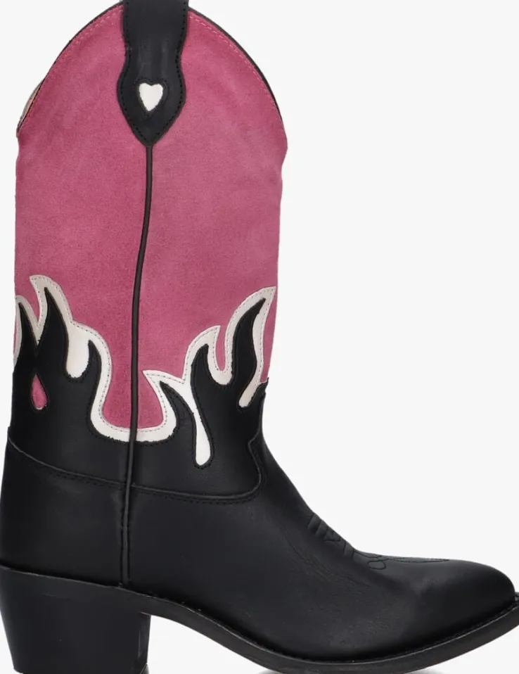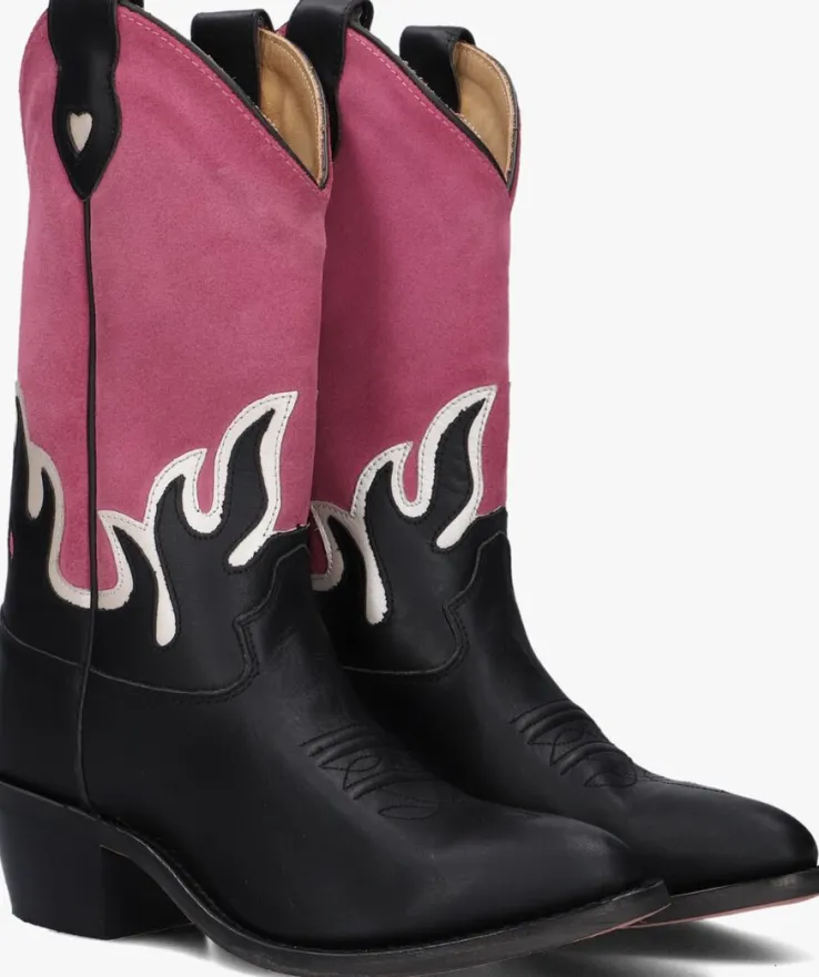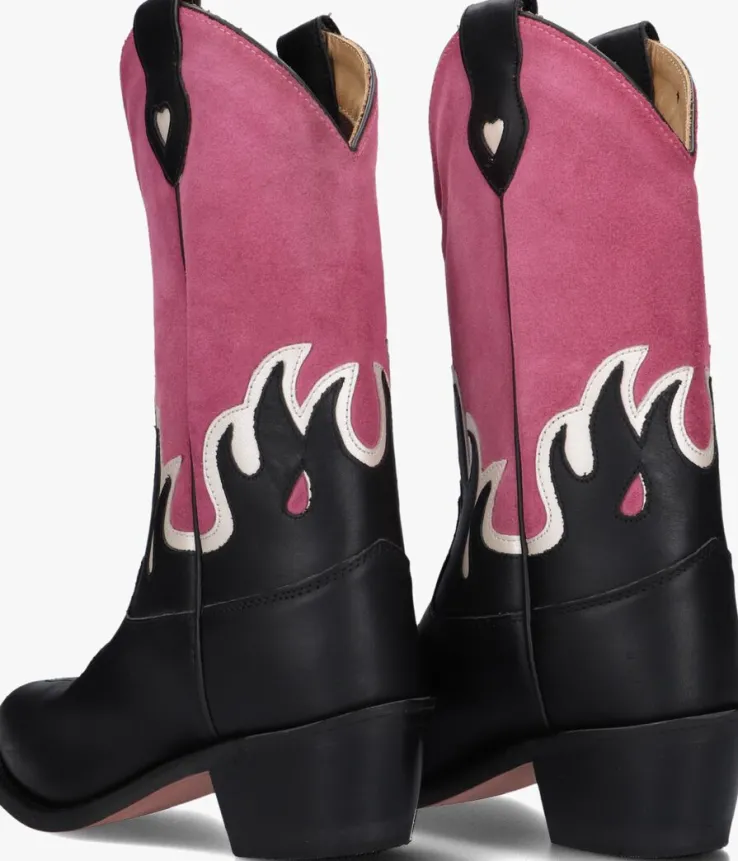 Stap in stijl met de FAYME cowboylaarzen voor meisjes. Deze zwart met roze laarzen van MOONRISE zijn gemaakt van leer en suéde en hebben een puntige neus en een blokhak van 5 cm wat zorgt voor een stoere look, terwijl het uitneembare voetbed en de leren binnenkant comfort bieden. Perfect voor een dagje uit of een feestje. Combineer ze met een denim rokje of een leuke jurk voor een trendy outfit. De rubberen zool zorgt voor grip en duurzaamheid. Met de FAYME laarzen ben je altijd klaar voor avontuur!