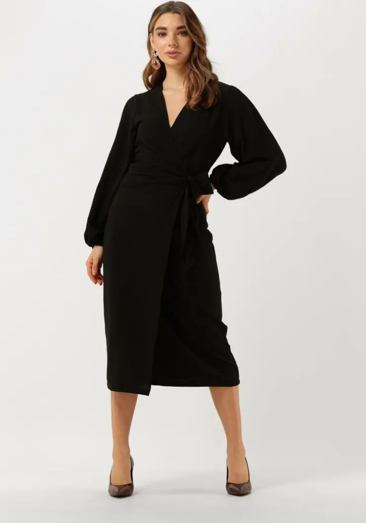 zwarte neo noir midi jurk onassis solid wrap dress
