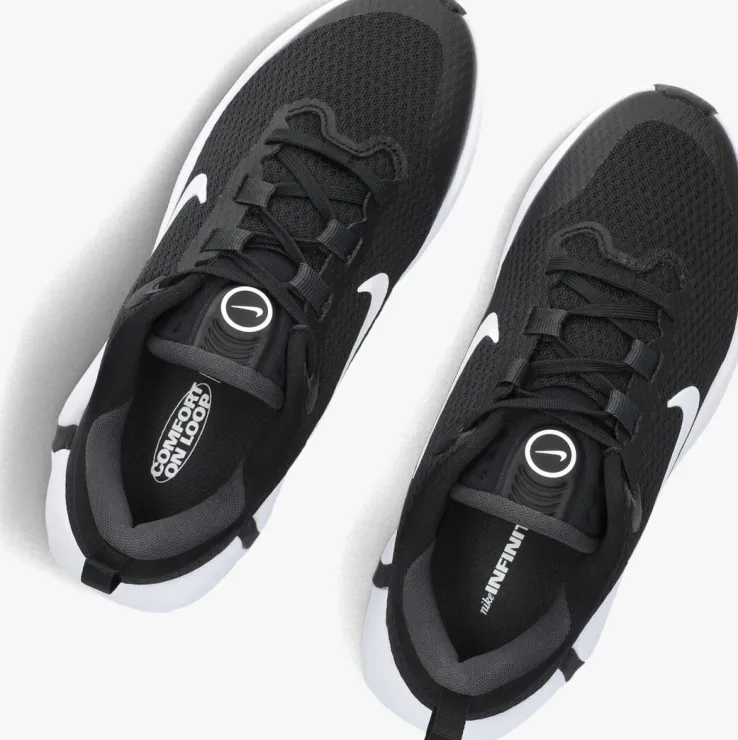 Stap in stijl met de NIKE INFINITY FLOW lage sneakers voor jongens. Deze zwarte sneakers combineren moeiteloos comfort en een stoere look. Perfect voor een potje voetbal op het plein of een middagje chillen met vrienden. De strakke zwarte kleur maakt ze makkelijk te combineren met een jeans of een sportieve jogger. Dankzij het ademende materiaal en de stevige zool ben je verzekerd van langdurig draagplezier.