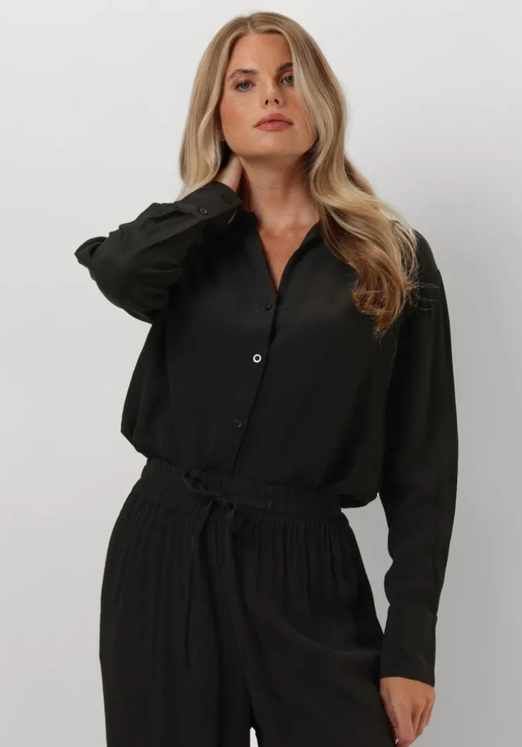 Maak kennis met de NV-EMMA blouse van NOTRE-V. Deze zwarte blouse is een must-have voor elke garderobe. Perfect voor een dag op kantoor of een avondje uit met vriendinnen. Combineer met een strakke jeans voor een casual look of draag met een elegante rok voor een chique uitstraling. De blouse heeft een tijdloze uitstraling en past bij elke gelegenheid. Voel je comfortabel en stijlvol in deze veelzijdige blouse. Voeg een paar opvallende accessoires toe en je bent klaar om te stralen.