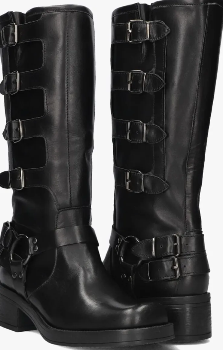 Ontdek de stoere en trendy FRY11 bikerboots van NOTRE-V, speciaal voor dames die houden van een utility look. Deze zwarte leren boots met carré neus en siergespen geven jouw outfit direct een edgy touch. De blokhak zorgt voor extra comfort en geeft je een zelfverzekerde uitstraling. Combineer de FRY11 met een oversized denim jacket en een stoere jeans voor een casual en fashionable look. Of draag ze onder een zwart leren rokje en een oversized trui voor een trendy en vrouwelijke outfit. Met deze bikerboots ben jij klaar om de wereld te veroveren!