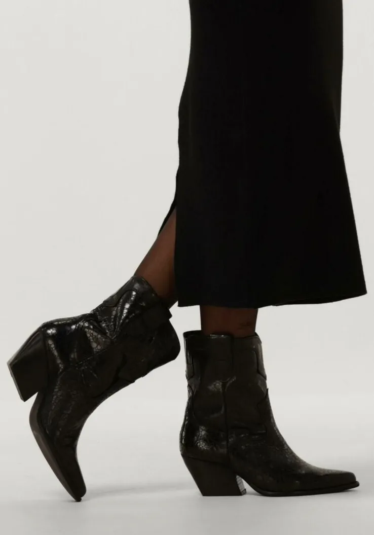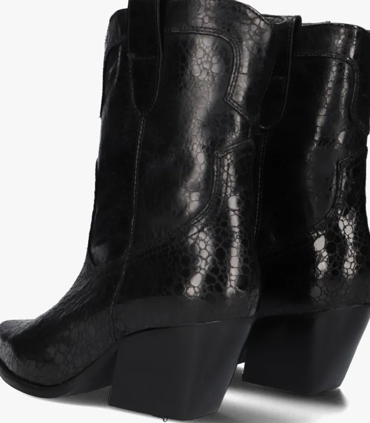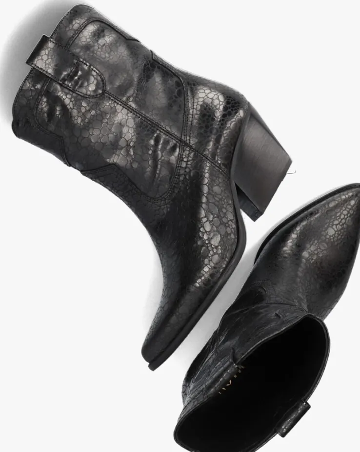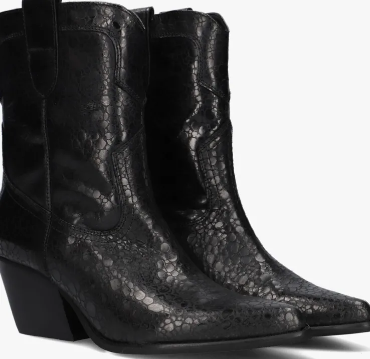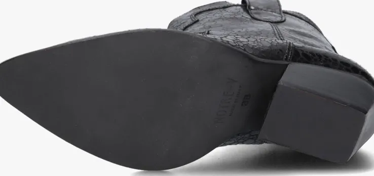 Ontdek de perfecte combinatie van stijl en comfort met de AR191 cowboylaarzen van NOTRE-V. Deze zwarte laarzen met puntige neus zijn een must-have voor de trendy dames. Met een schachthoogte van 18 centimeter en een blokhak van 7 centimeter hoogte geven ze je outfit een stoere en vrouwelijke touch. De buitenkant bestaat uit leer met een reliëf en is afgewerkt met een hoge glans. De city western accenten zie je terug aan het gestikte patroon op de schacht, de schuine blokhak met houtlook en tevens de aantreklussen aan beide kanten voor een gemakkelijke instap. De leren binnenkant zorgt voor een ademend gevoel, terwijl de rubberen zool zorgt voor grip en stabiliteit. Draag deze cowboylaarzen met een denim jeans voor een casual look of combineer ze met een zwierige jurk voor een trendy city western stijl. Laat je innerlijke fashionista stralen met deze cowboylaarzen!