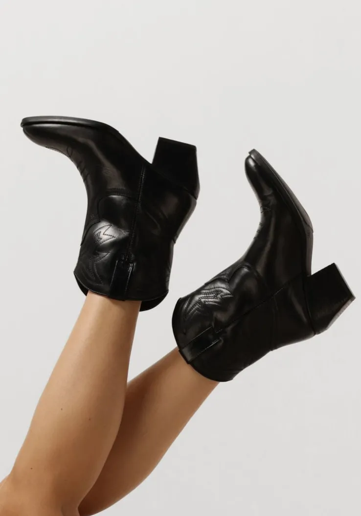 Een mooienkellaarsje isonmisbaar in je schoenenkast! Dit zwarte model KI-4608 met city western invloedenis van het merk NOTRE-Ven maakt al jouw outfits af! Het laarsje is gemaakt vangladleer en heeft eenbinnenwerk van textiel met een vast voetbed met dempende schuimlaag. Dit laarsje heeft niet alleeneen prettig loopcomfort, maar benadrukt ook de stoerecowboy-look in jouw favoriete outfit, want de gestikte patronen op de schacht en voorvoet, de puntige neus, de afgeronde schacht met aantreklussen en de houtlook blokhak makenhet plaatje compleet.De hakhoogte is 7centimeter en deschachthoogte is 17centimeter, gemeten bij maat 37. Draag ‘m met een zwierige jurk of een stoere jeans!