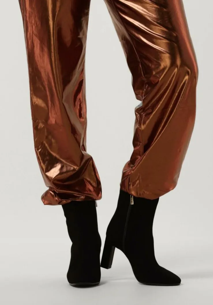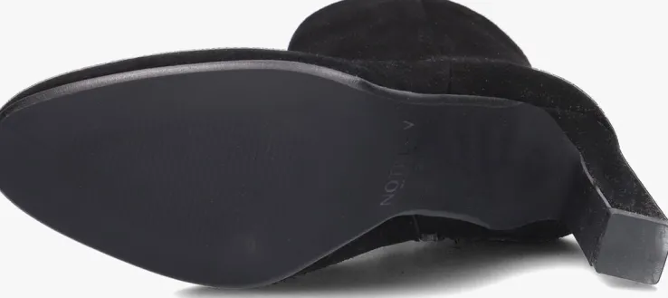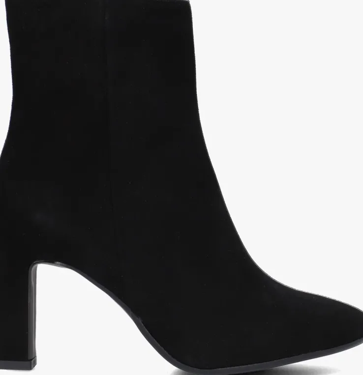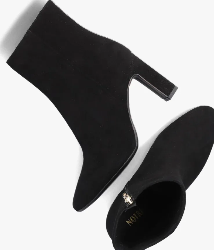 Ga voor een chique look met deze enkellaars 11236 van het toffe merkNOTRE-V!Dit modelheeft een bovenwerk van hoogwaardig suède in een mooie, zwarte kleur. De laars heefteen rechte schacht met een handige ritssluiting aan de binnenzijde om ‘m gemakkelijk aan en uit te trekken. Opvallend detail is de naar binnen gestikte naad aan de schacht en de goudkleurige ritshanger met merkreliëf. Verder heeft dit item een trendy neus met een smalle blokhak van zo’n 9 centimeter hoog. Het binnenwerk bestaat uit zacht leer in combinatie met leatherlook dat comfortabel aanvoelt aan je voeten en de schoen heeft een vast voetbed. De kunststof loopzool geeft de laars een mooi afgewerkt geheel en met het fijne lijntjesprofiel heb je een goede grip. Deschacht is 14 centimeter hoog, gemeten bij maat 38. Draag de schoenen elegant onder eenjurkje of stoer onder een jeans!
