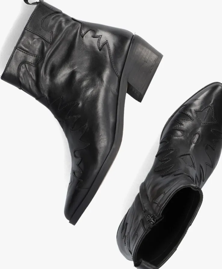 Ontdek de veelzijdigheid van de 18060 enkellaarzen van NOTRE-V. Deze zwarte laarzen zijn perfect voor dames die stijl en comfort willen combineren. Het bovenwerk bestaat uit gladleer en heeft opgestikte patronen. Ook heeft dit model cowboy accenten, zoals de lichtpuntige neus, de schuine blokhak met houtlook en de stiksels op de voorvoet. De leren binnenkant zorgt voor een ademend gevoel, terwijl de rubberen loopzool zorgt voor grip en stabiliteit. Dankzij de ritssluiting trek je dit model razendsnel aan. Met een hakhoogte van 4 centimeter zijn deze laarzen ideaal voor dagelijks gebruik. Draag ze met een skinny jeans voor een casual look of combineer ze met een jurk voor een chique uitstraling. Of je nu naar kantoor gaat of een avondje uit, deze enkellaarzen zijn de perfecte keuze!