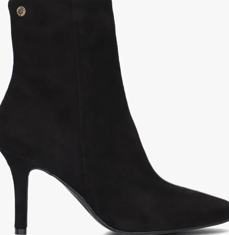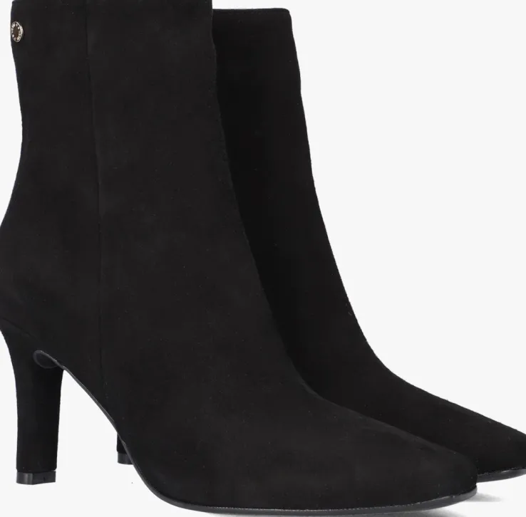 De elegante Italiaanse ontwerpen van het merk NOTRE-V zijn er voor de verfijnde vrouw die er graag effortless chic uit wil zien. De producten zijn gemaakt van luxe materialen met subtiele accenten en een knipoog naar de laatste trends. Dit zwarte ultrafeminin enkellaarsje 7436is gemaakt van zacht suèdeen heeft een spitseneus en een smalle hak. De hak van zo’n 8 centimeterhoog benadrukt jouwvrouwelijkheiden laat je benen mooi uitkomen. De voering is gemaakt van leeren heeft een vast voetbed. Dankzij de ritssluiting aan de binnenzijde van de laars ervaar je veel gemak bij het aan- en uittrekken. Het fijne profiel onder de rubberen zool zorgt voor voldoende grip en stabiliteit, zodat jij zelfverzekerd naar al je afspraken loopt. Schachthoogte is 14centimeter.
